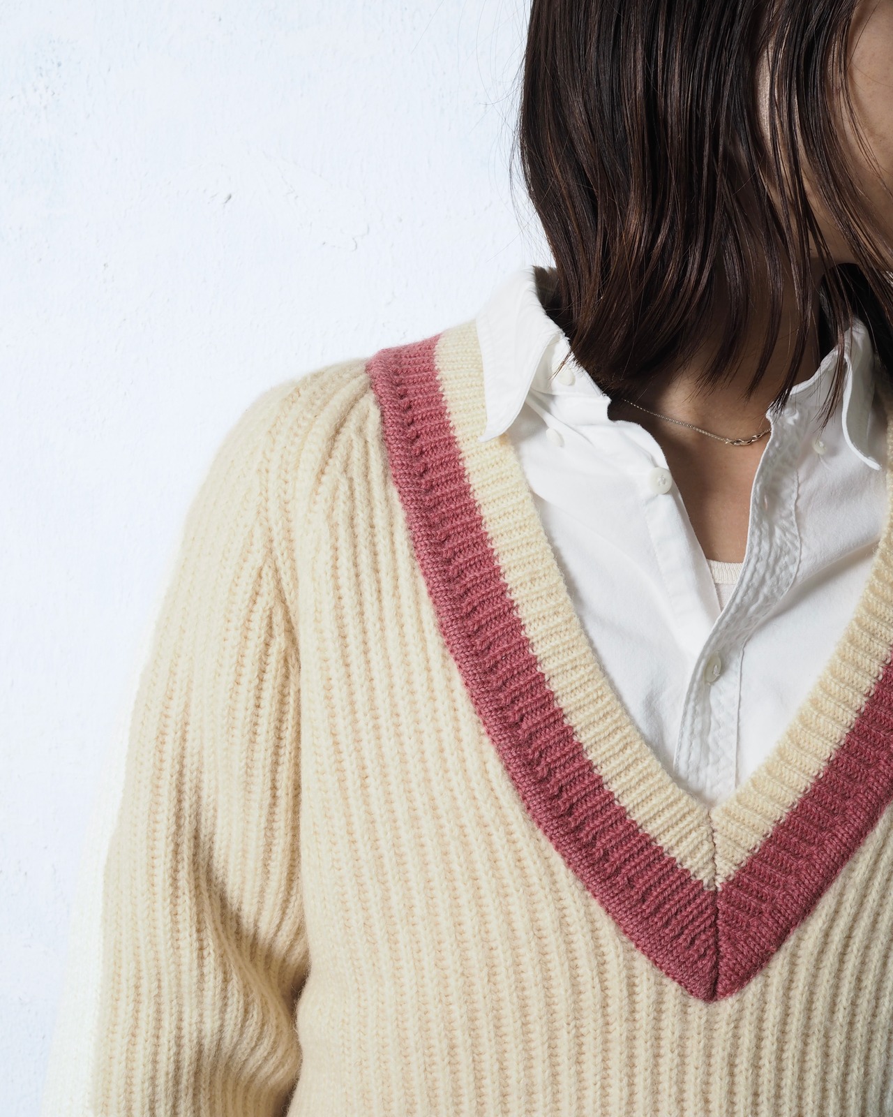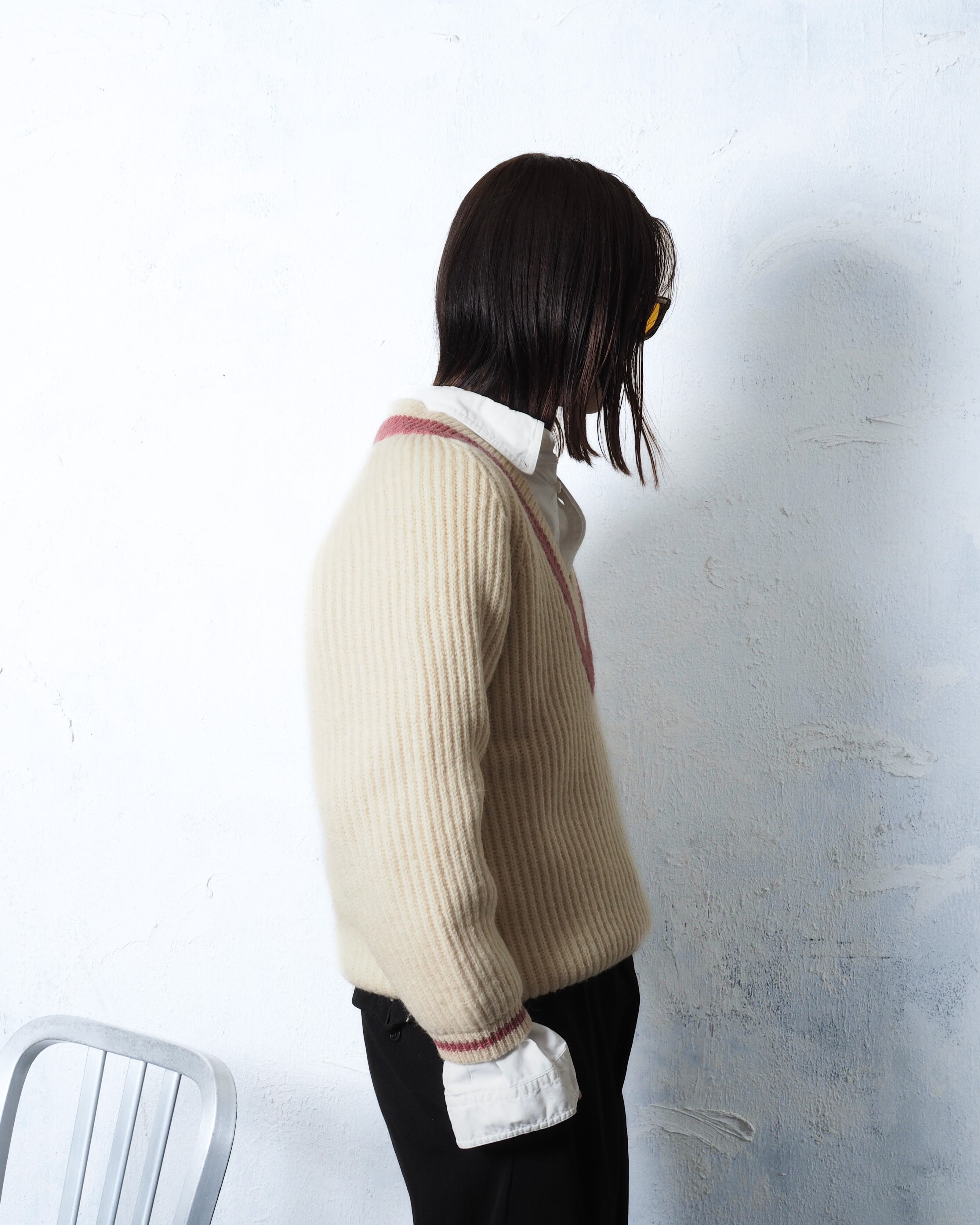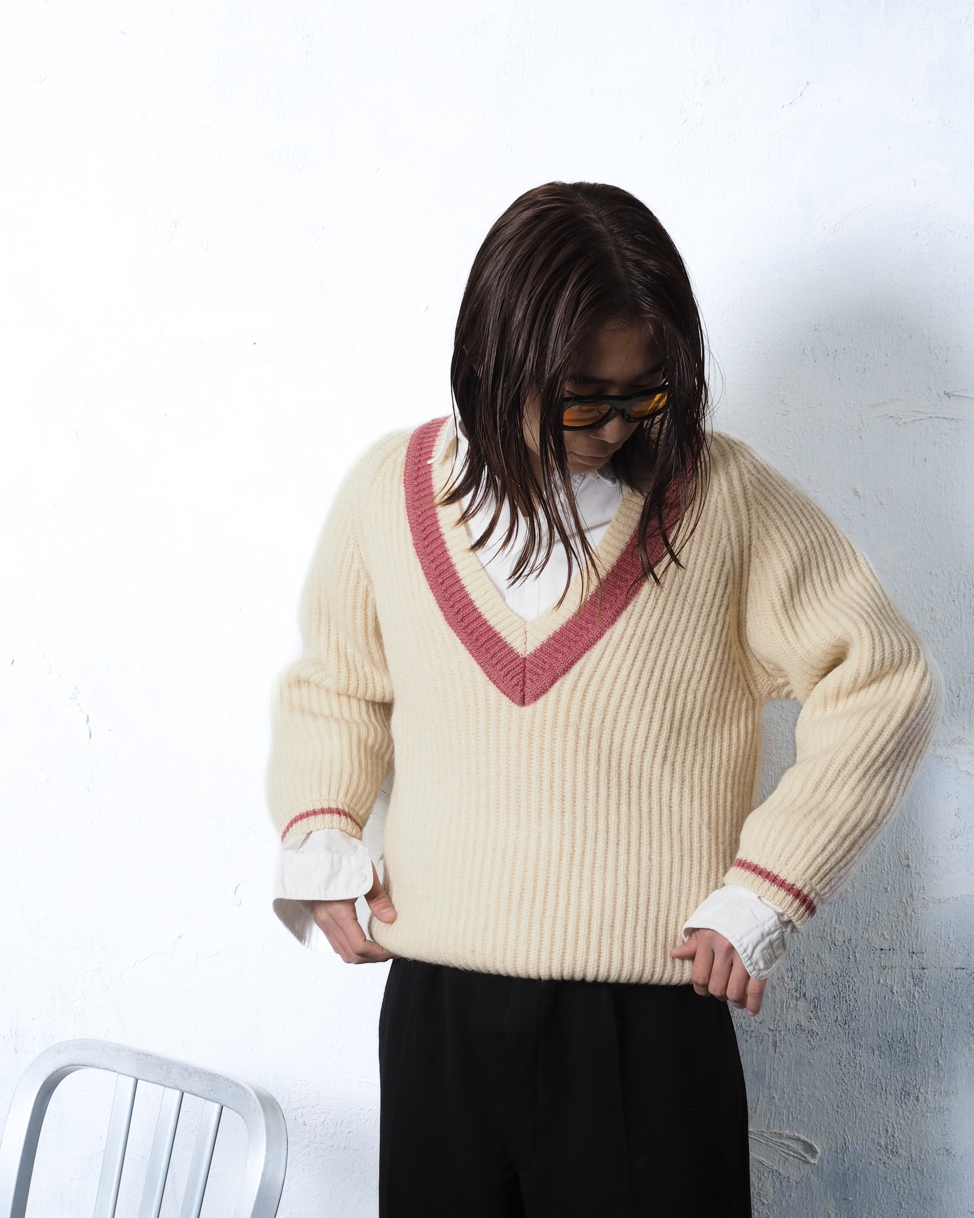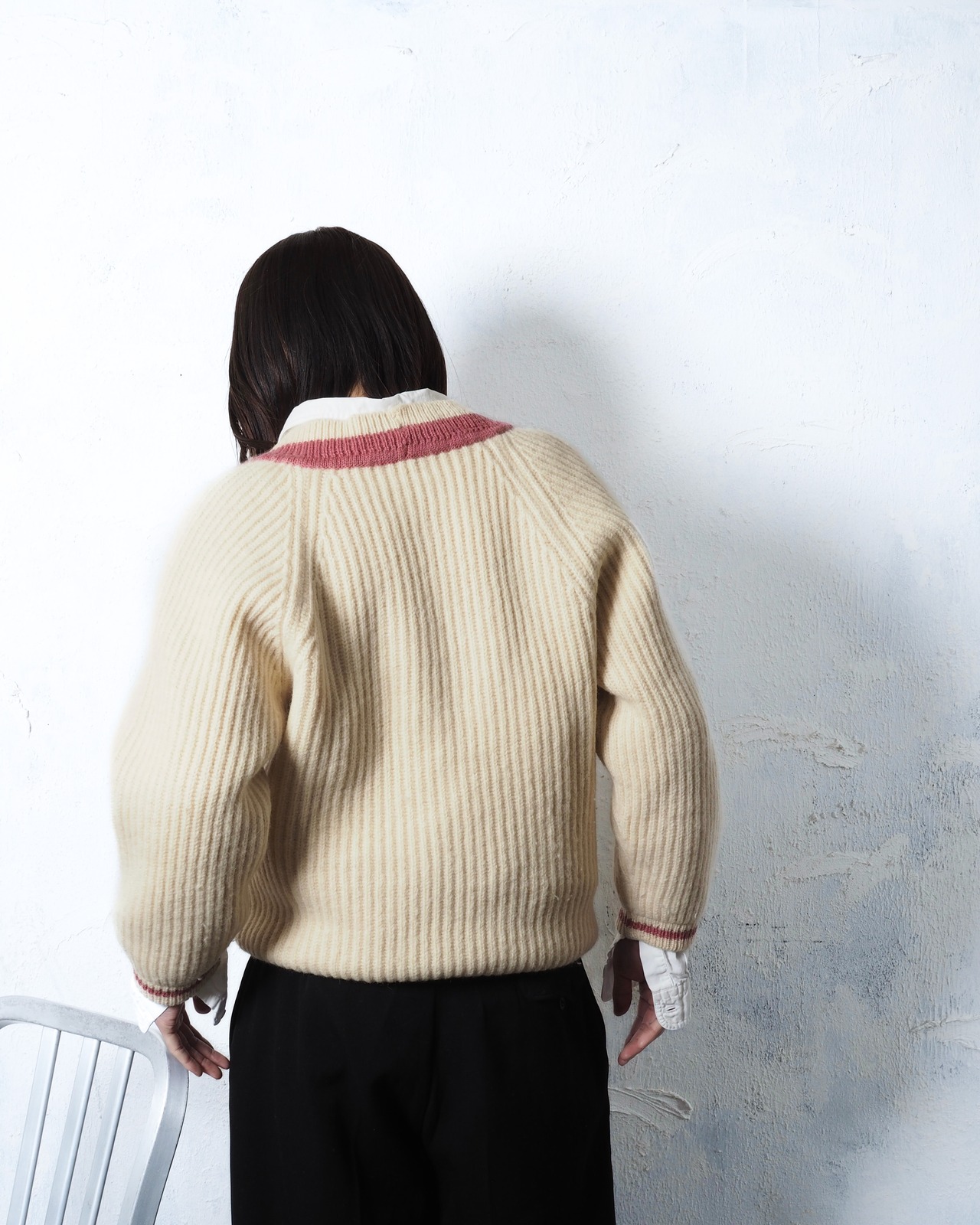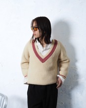 太めのリブに加え、太畝ニット