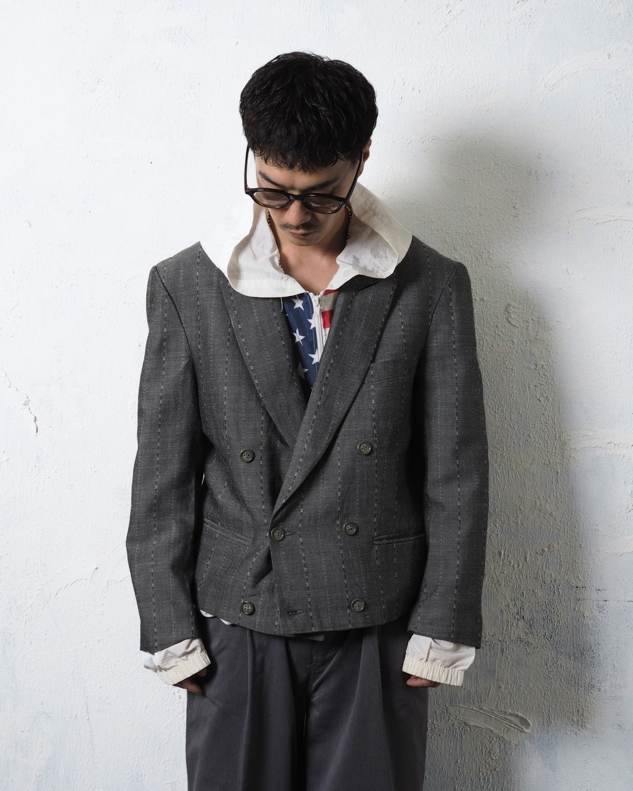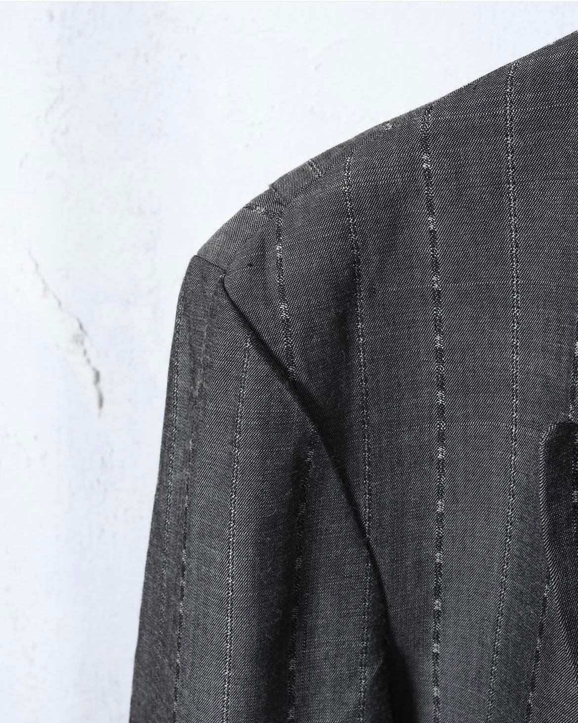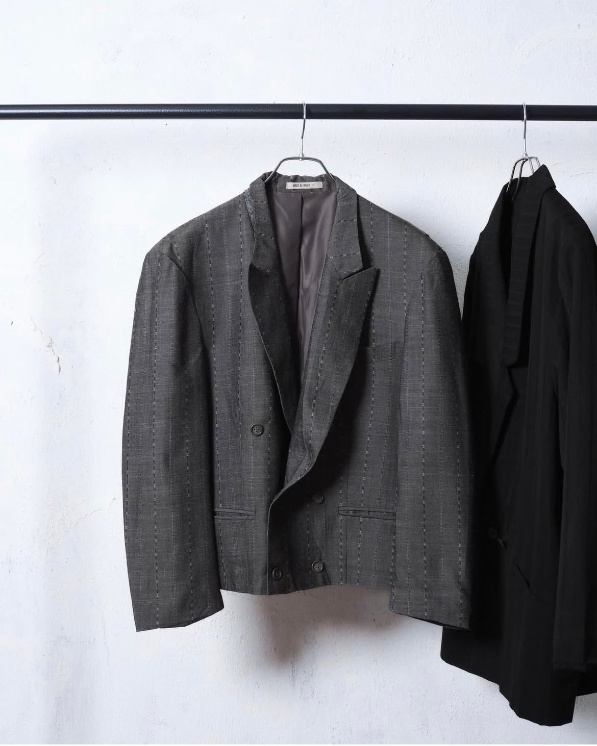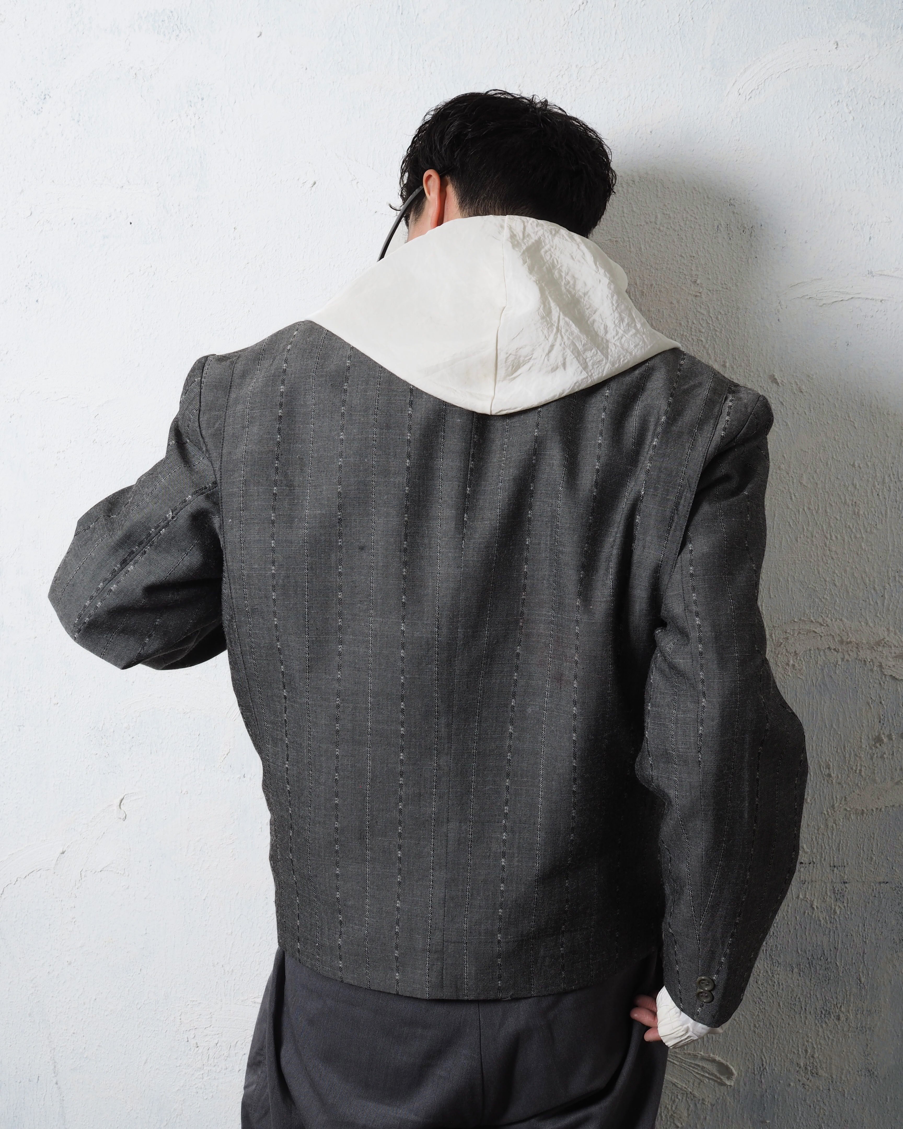 一つ目はメタリック?テイストな同色ストライプの短丈テーラード