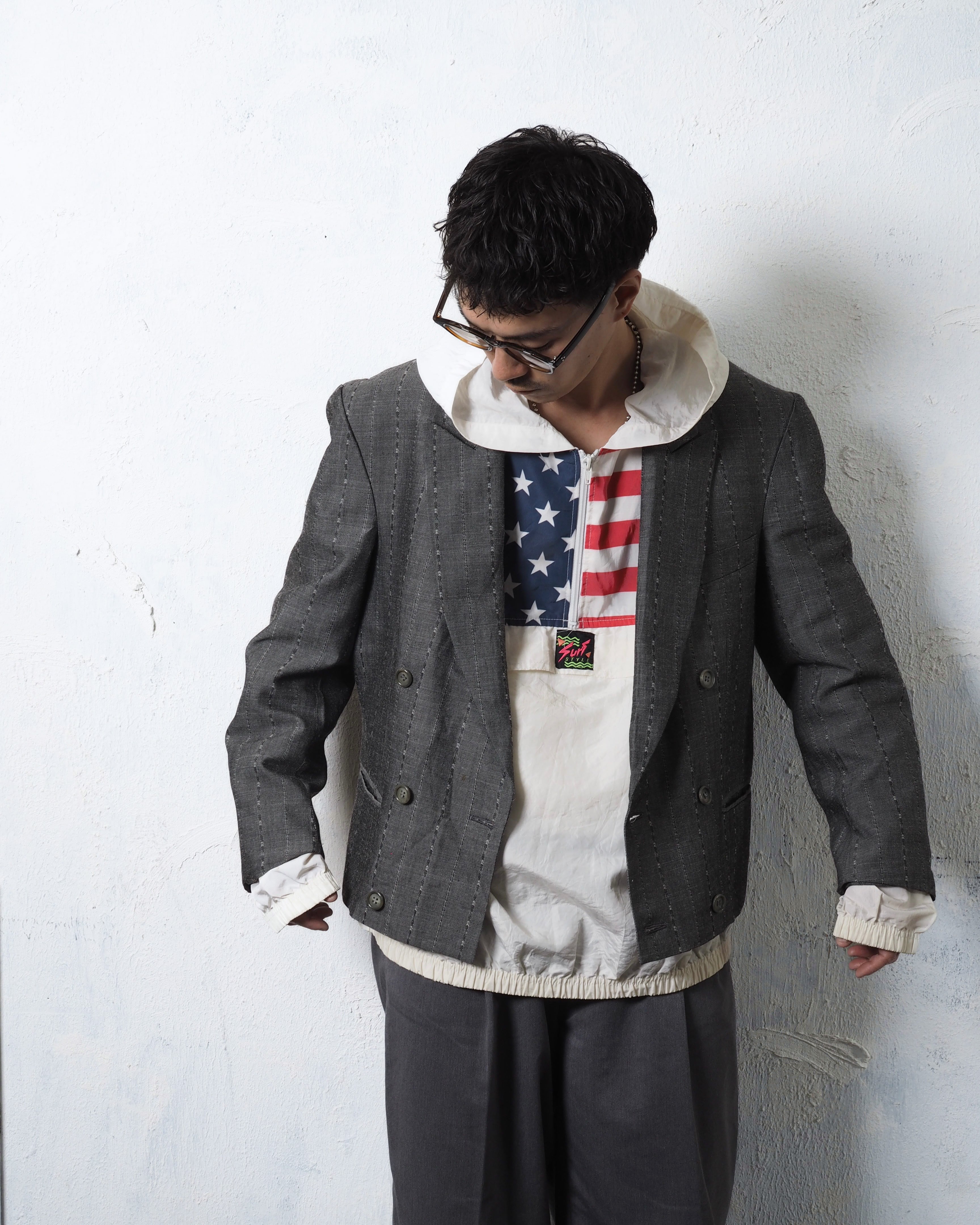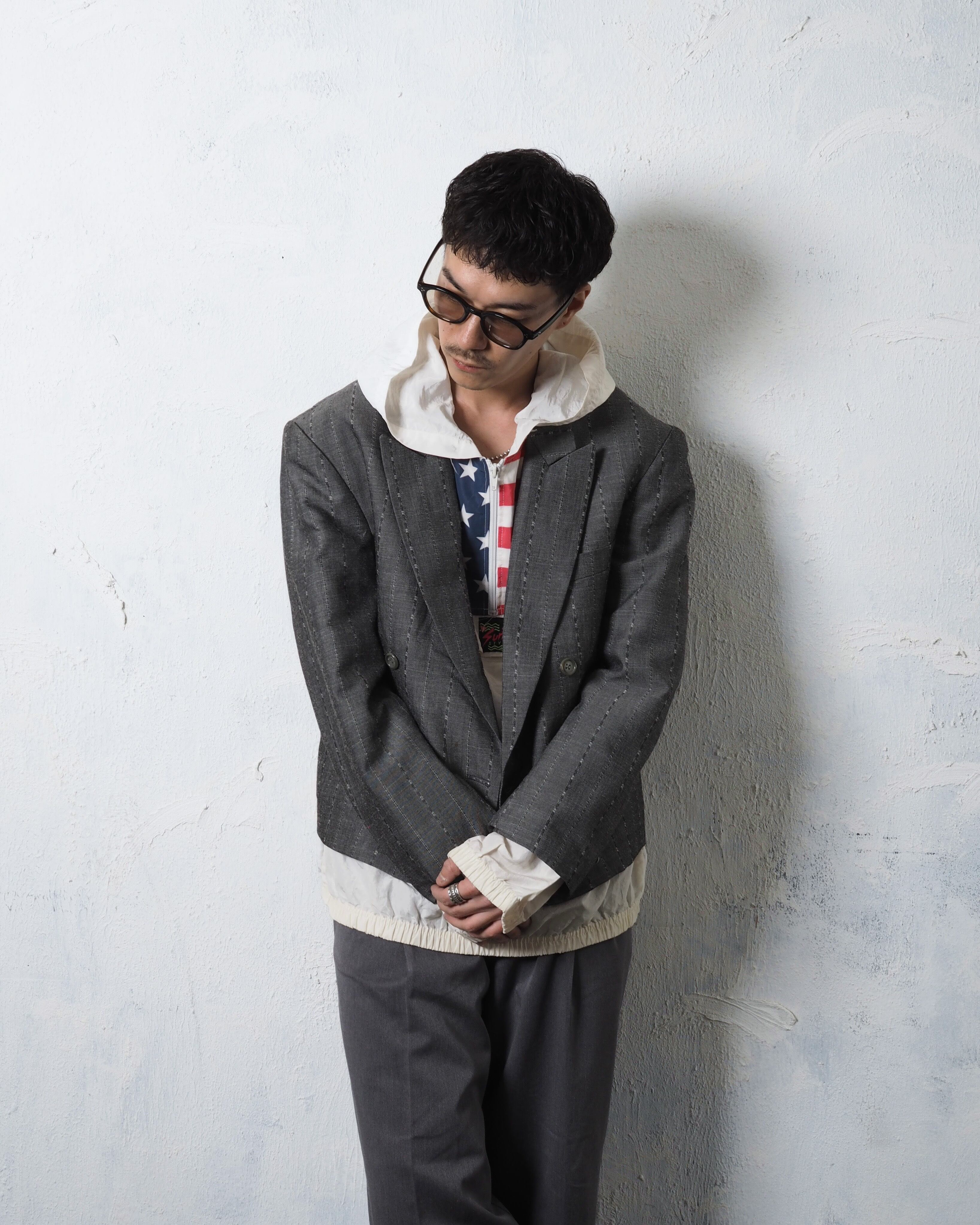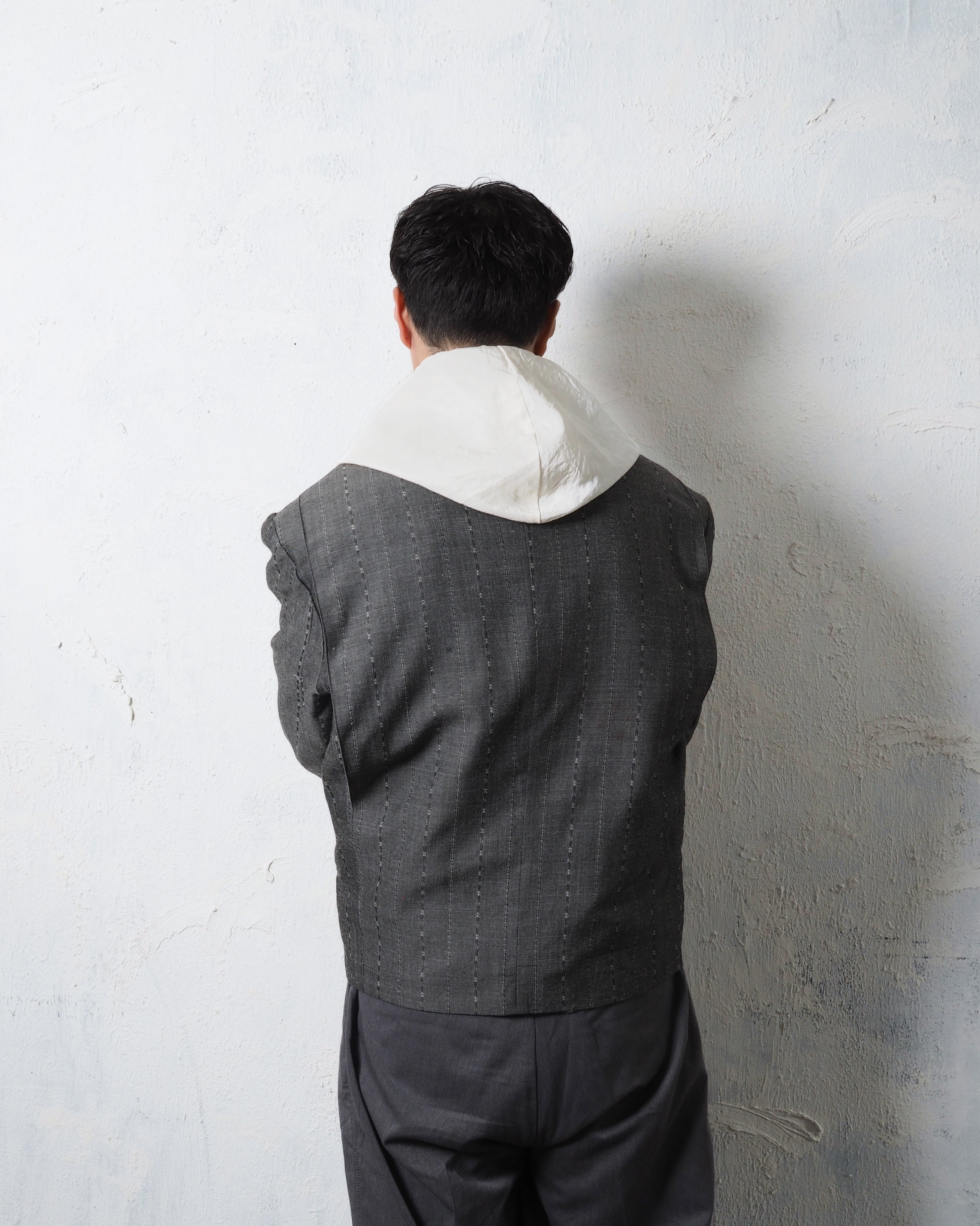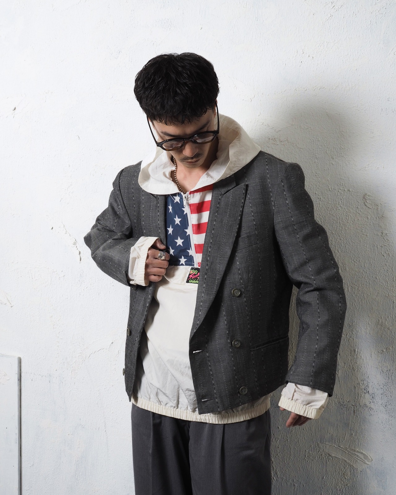 一つ目はメタリック?テイストな同色ストライプの短丈テーラード
