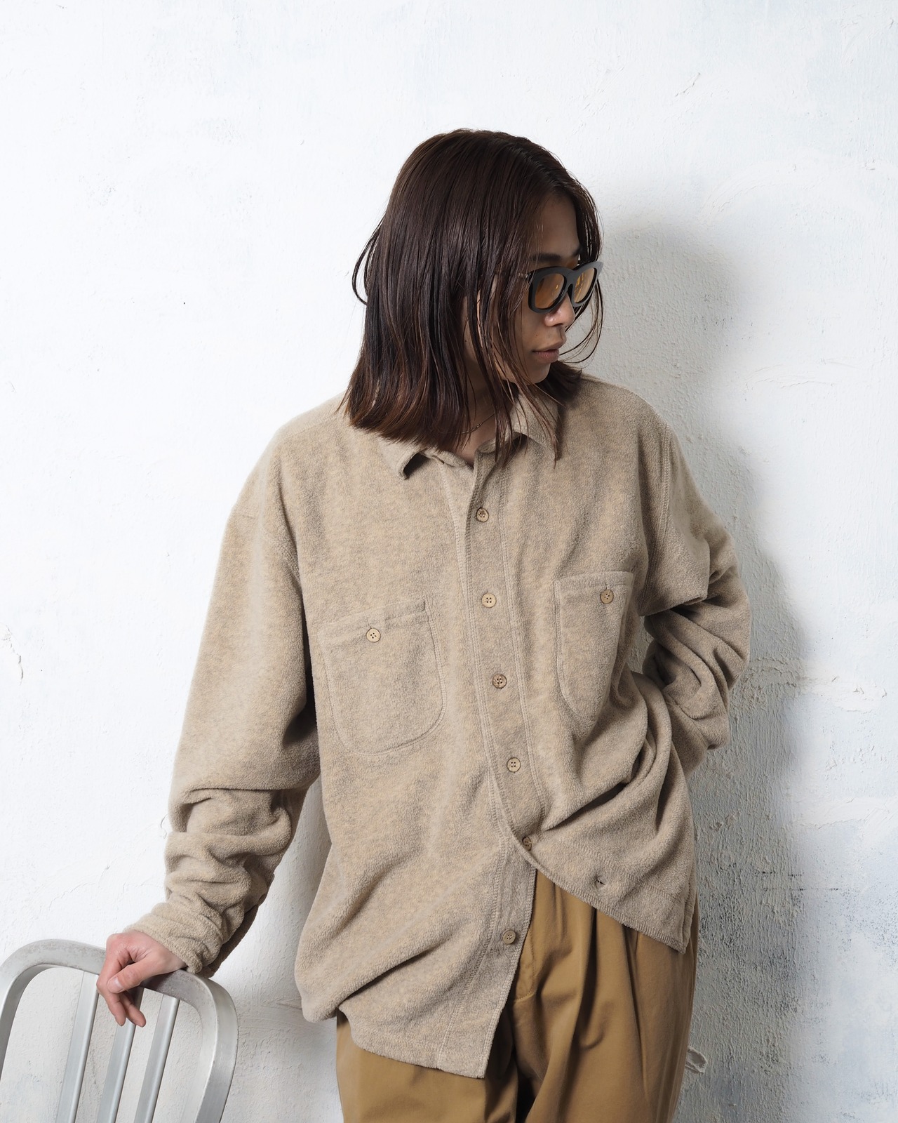 フリースとパイルの中間生地で、シャツディティールだけどカバーオールのようなサイズ感