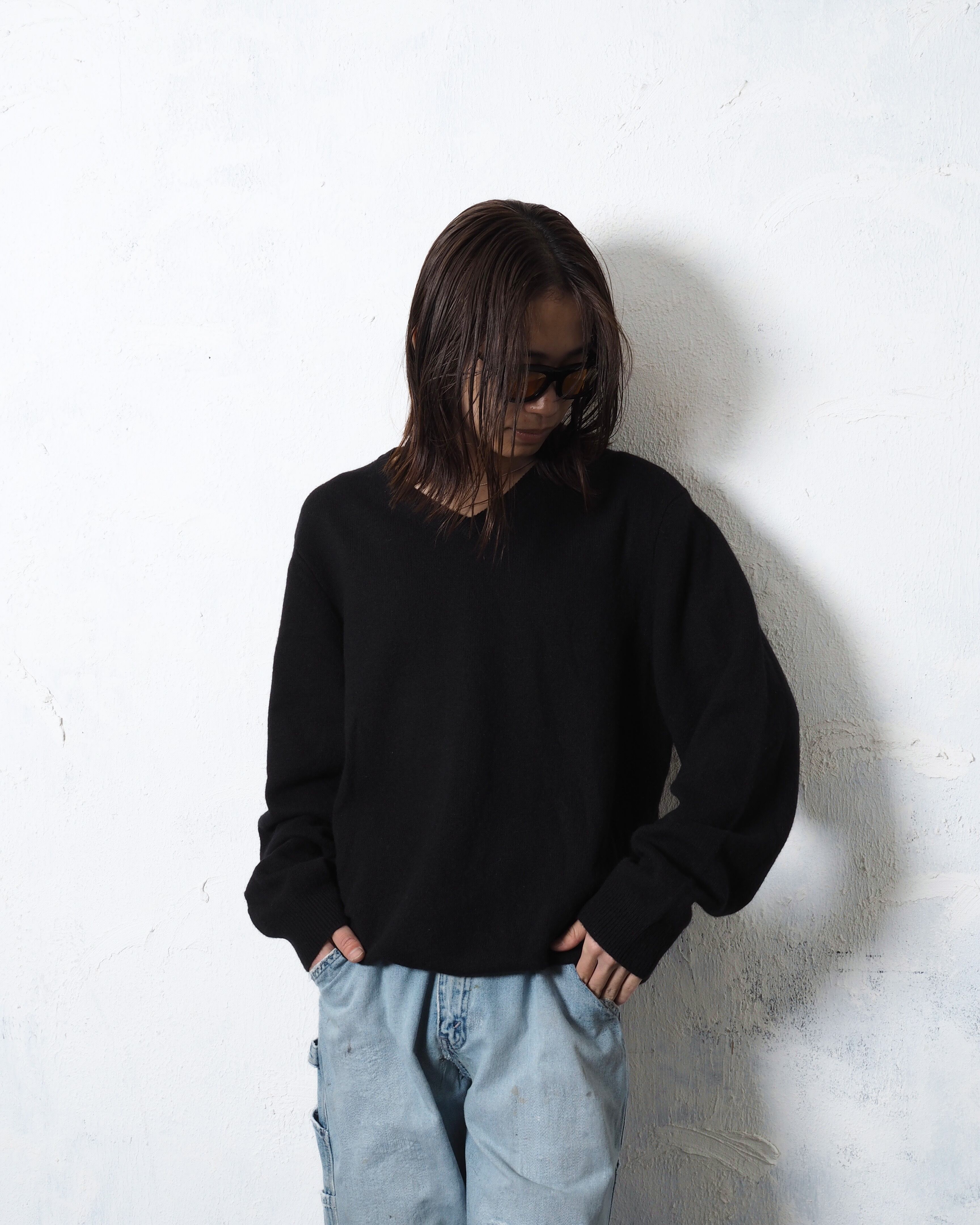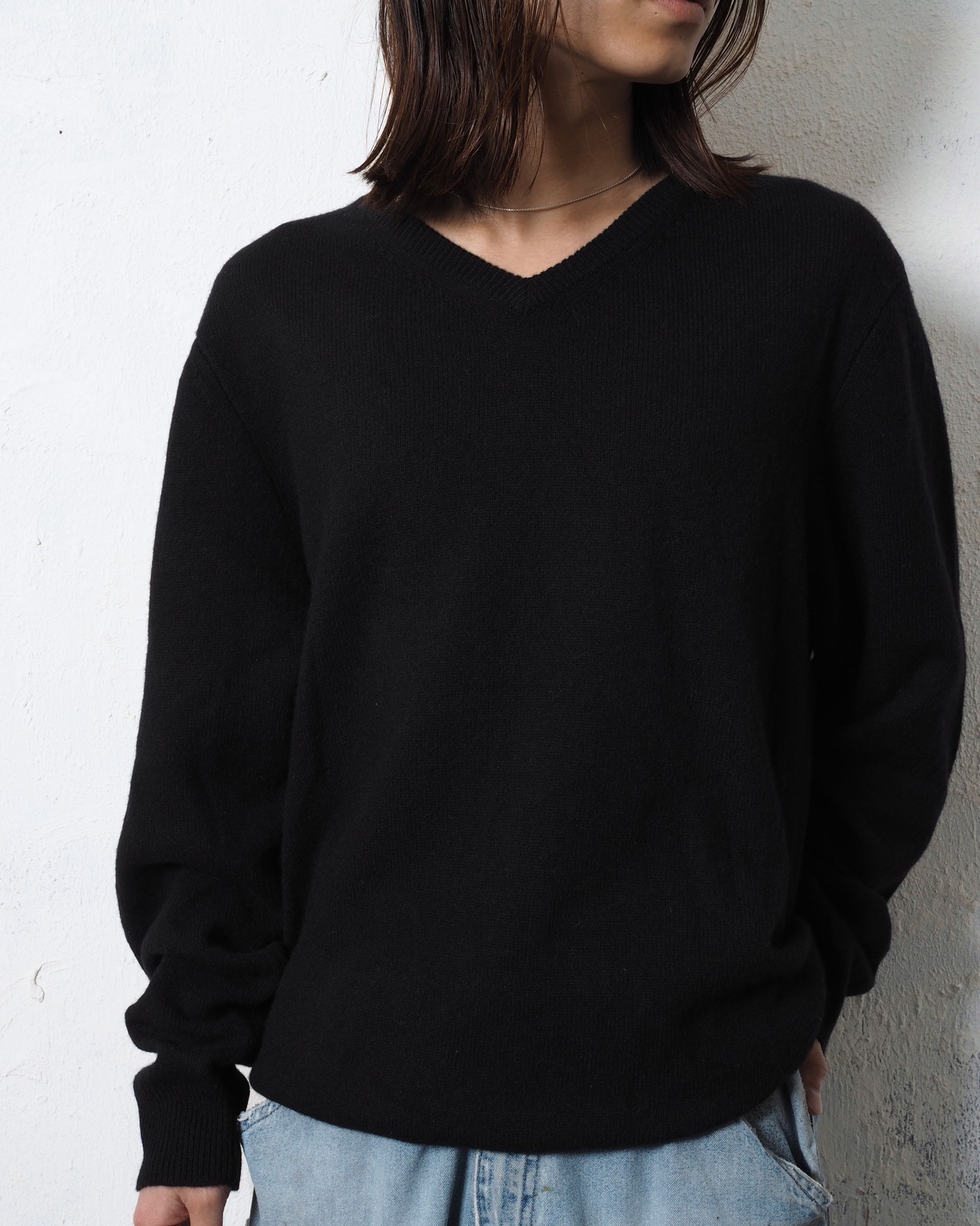 無難に使えて、でも条件拘ると中々出会えない黒単色Vネックニット