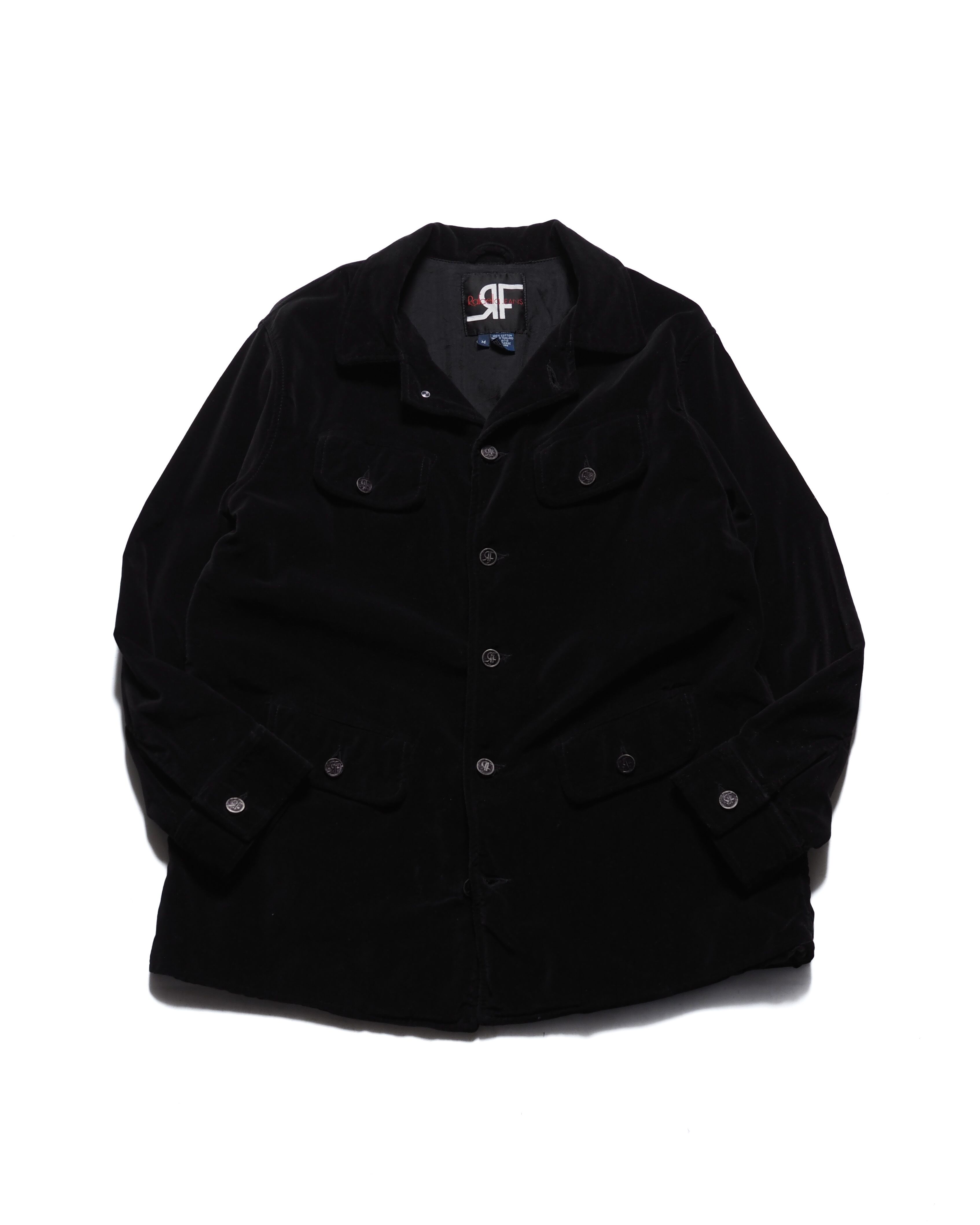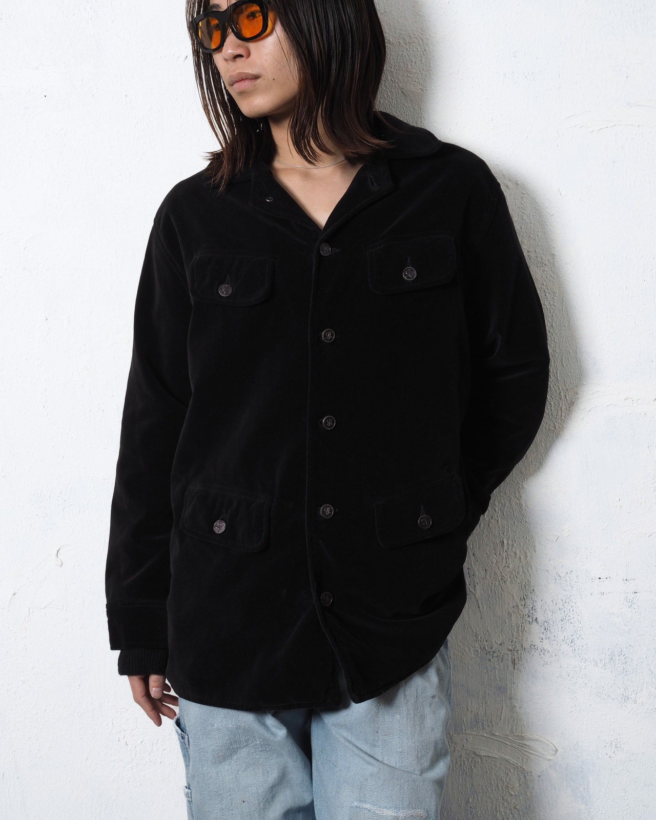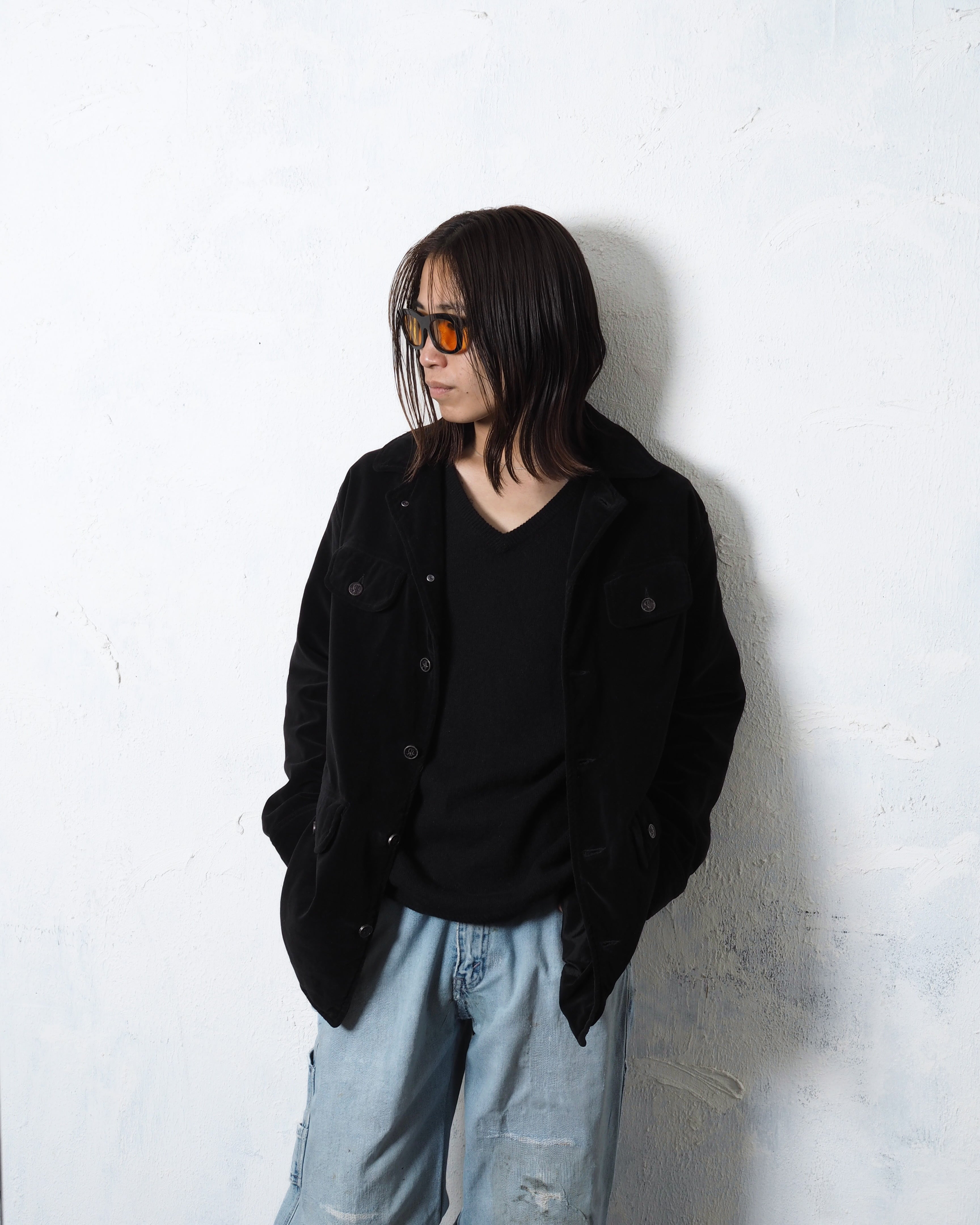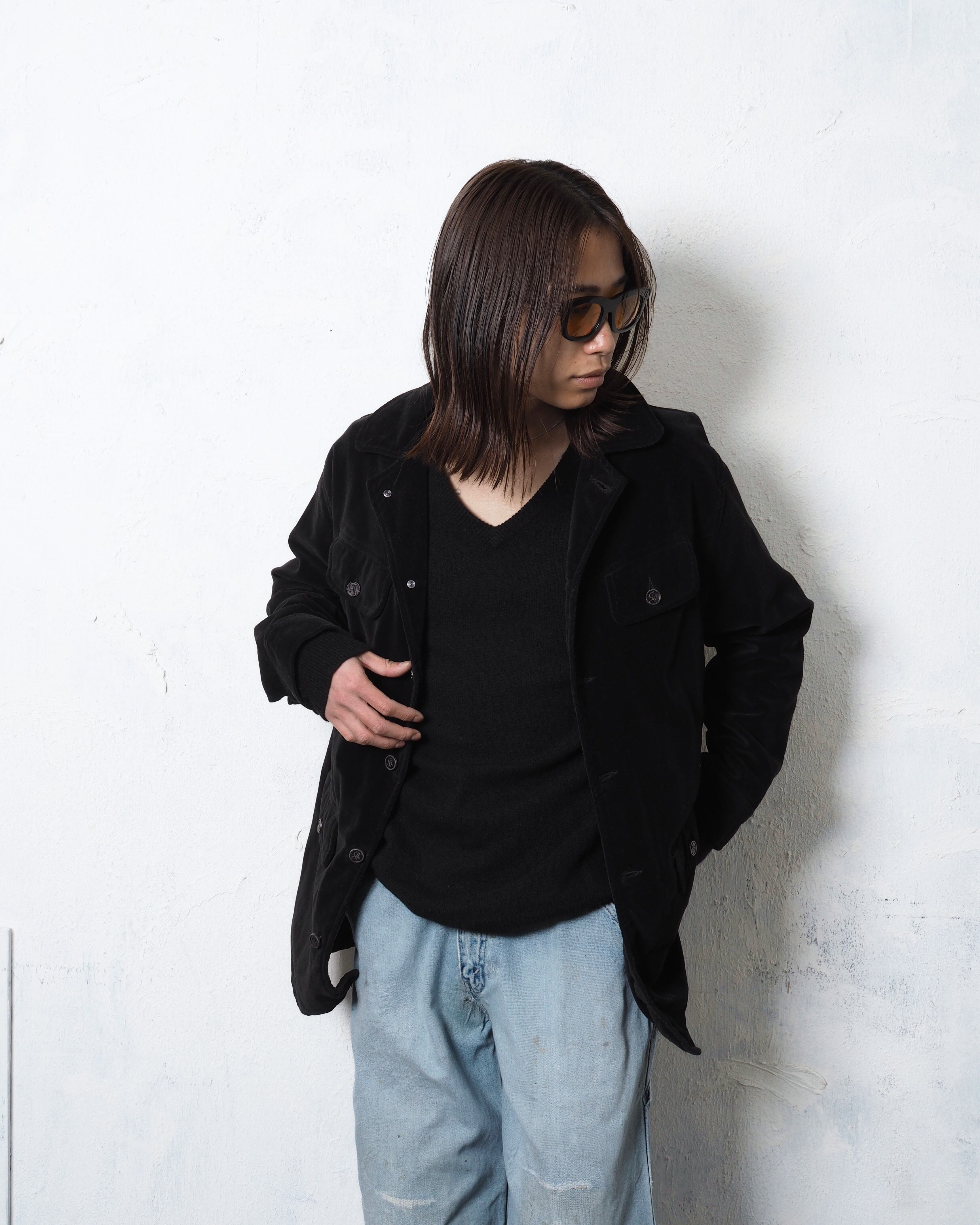 フロント4つポケでベロア生地、このタイプはエポレットが付く印象ですが、これには付いておらず嬉しいポイント