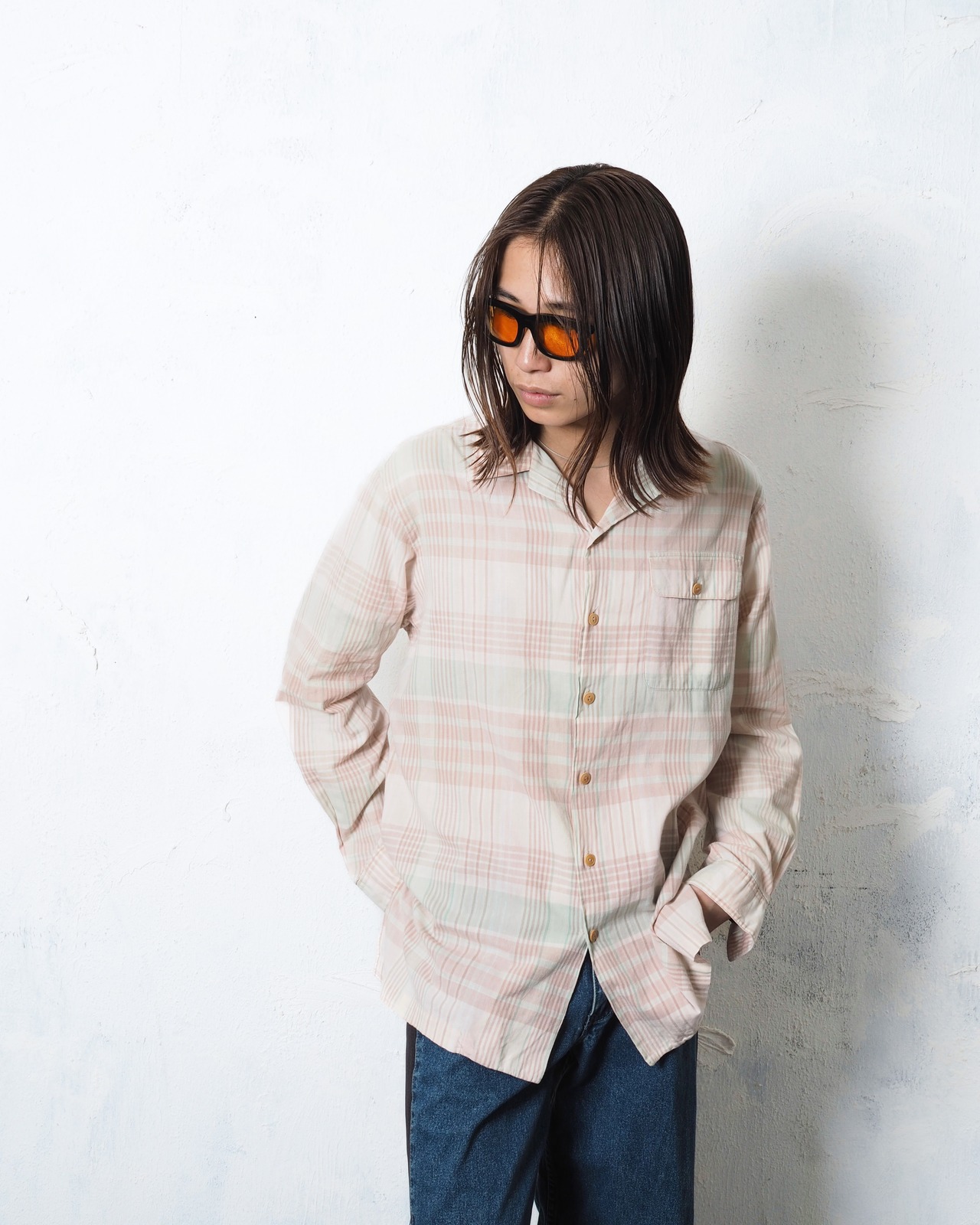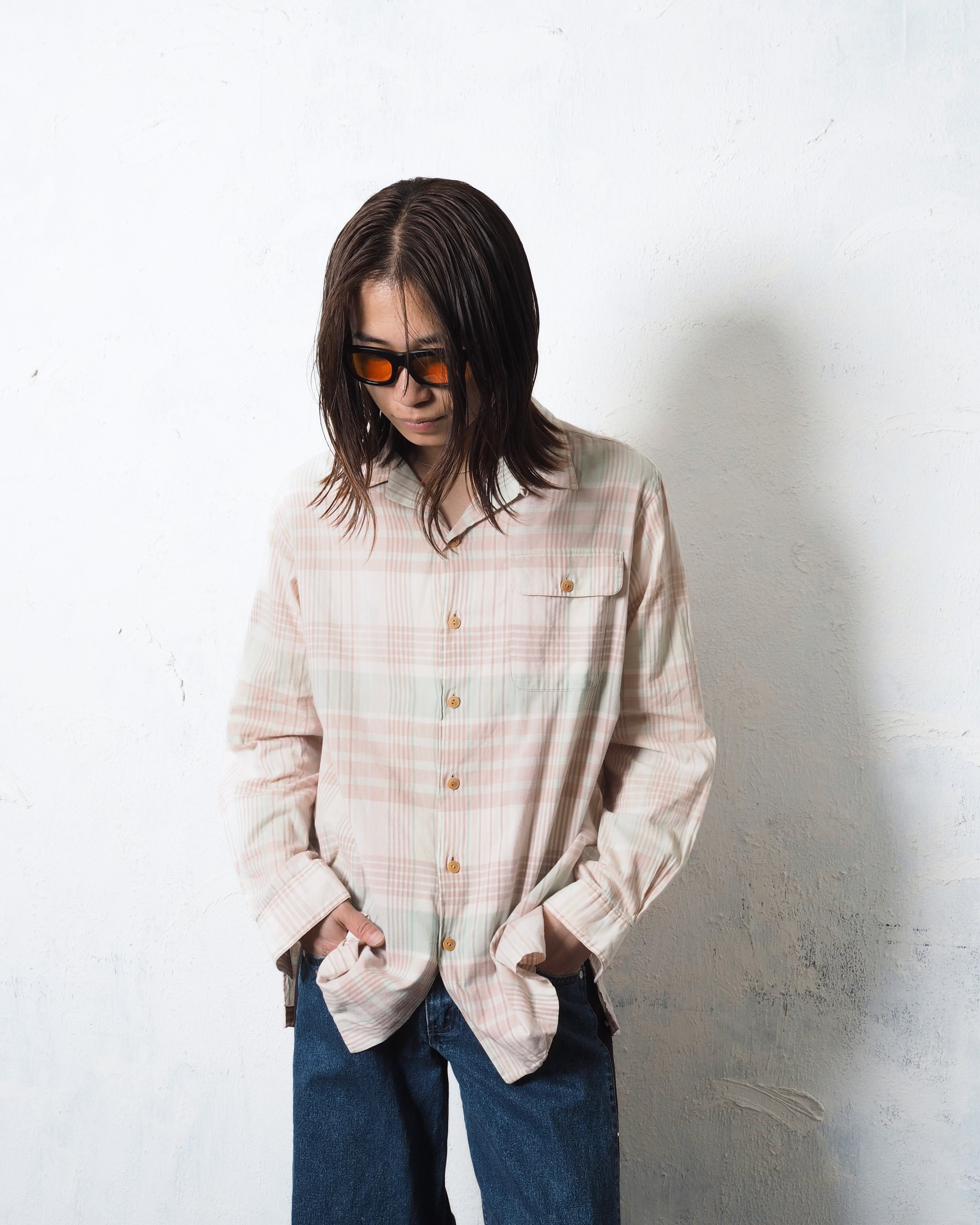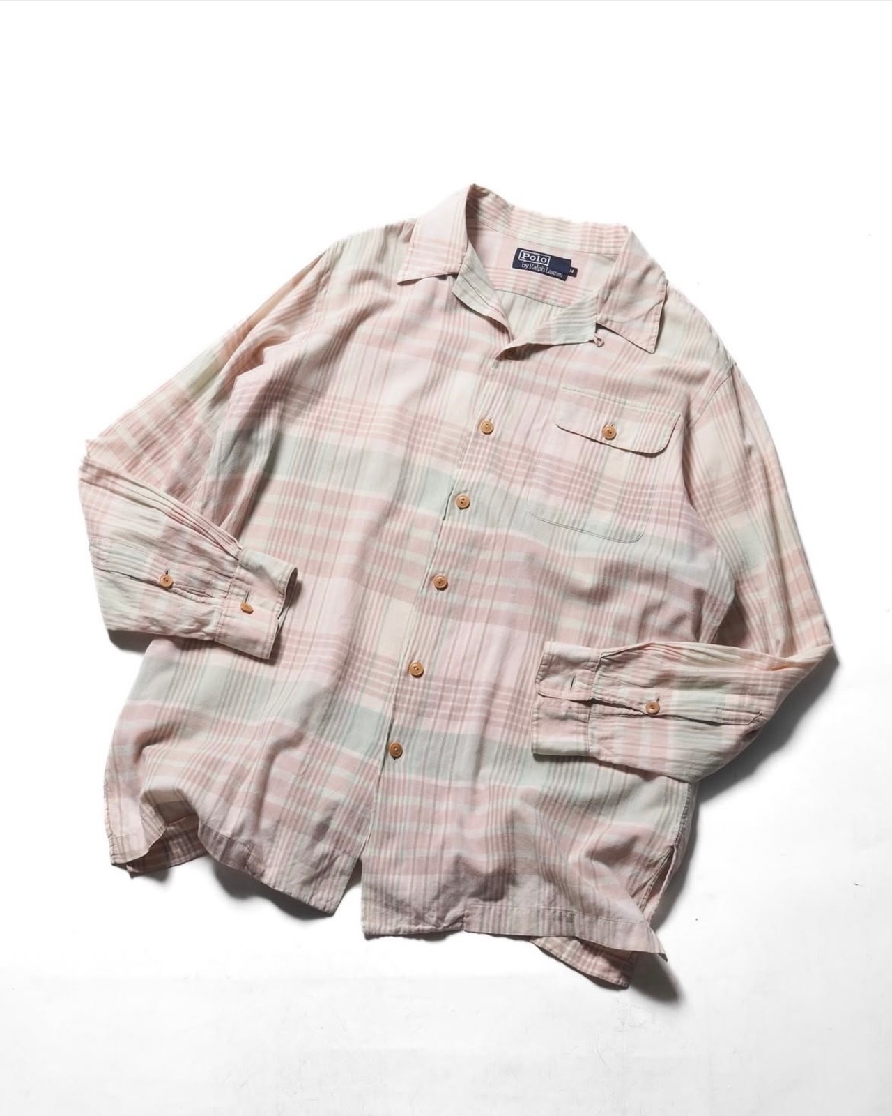 色もアイテムチョイスも春を先取りした、ラルフローレンチェック開襟シャツ