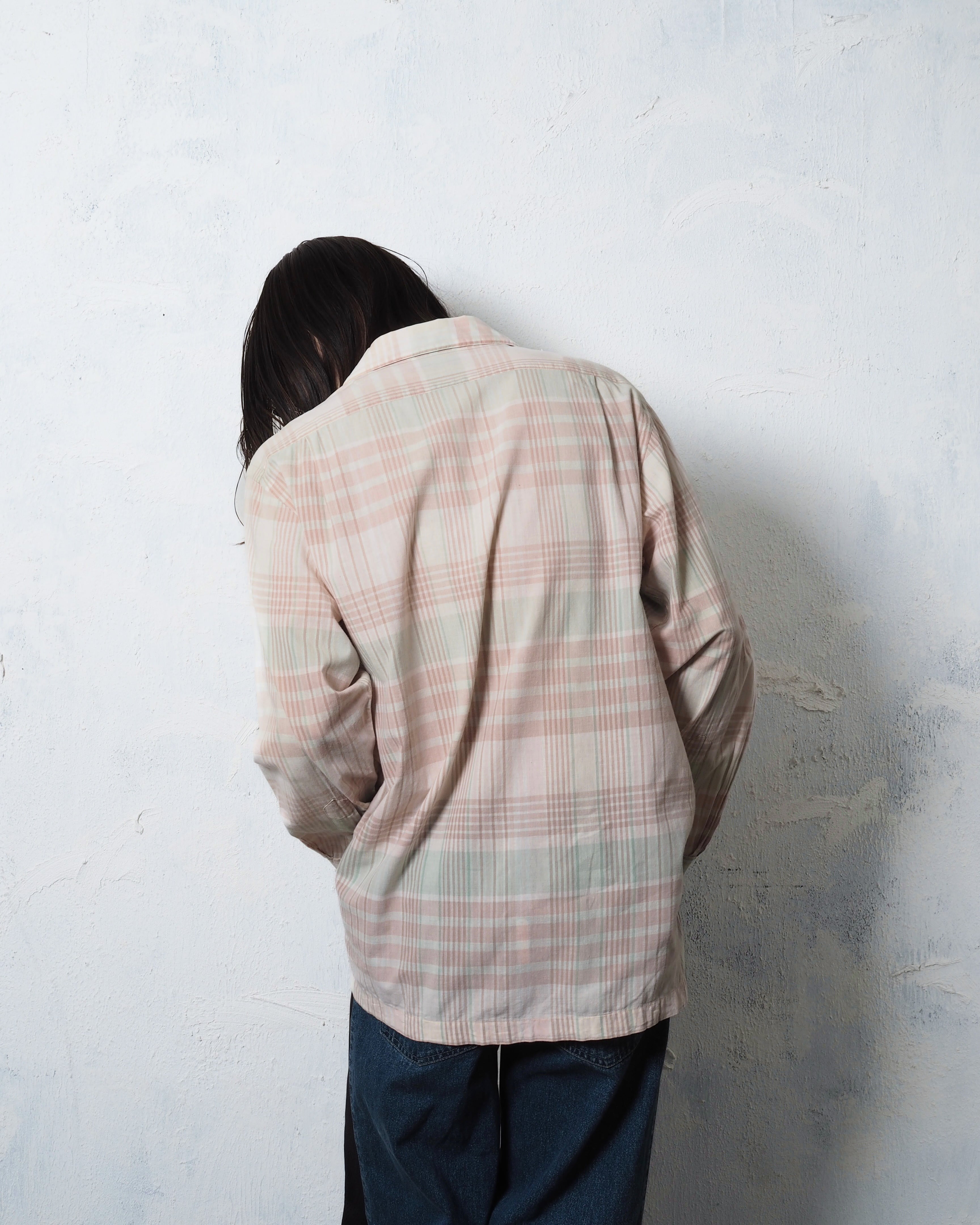 ベビーピンクボディに淡い緑の刺しチェック、
