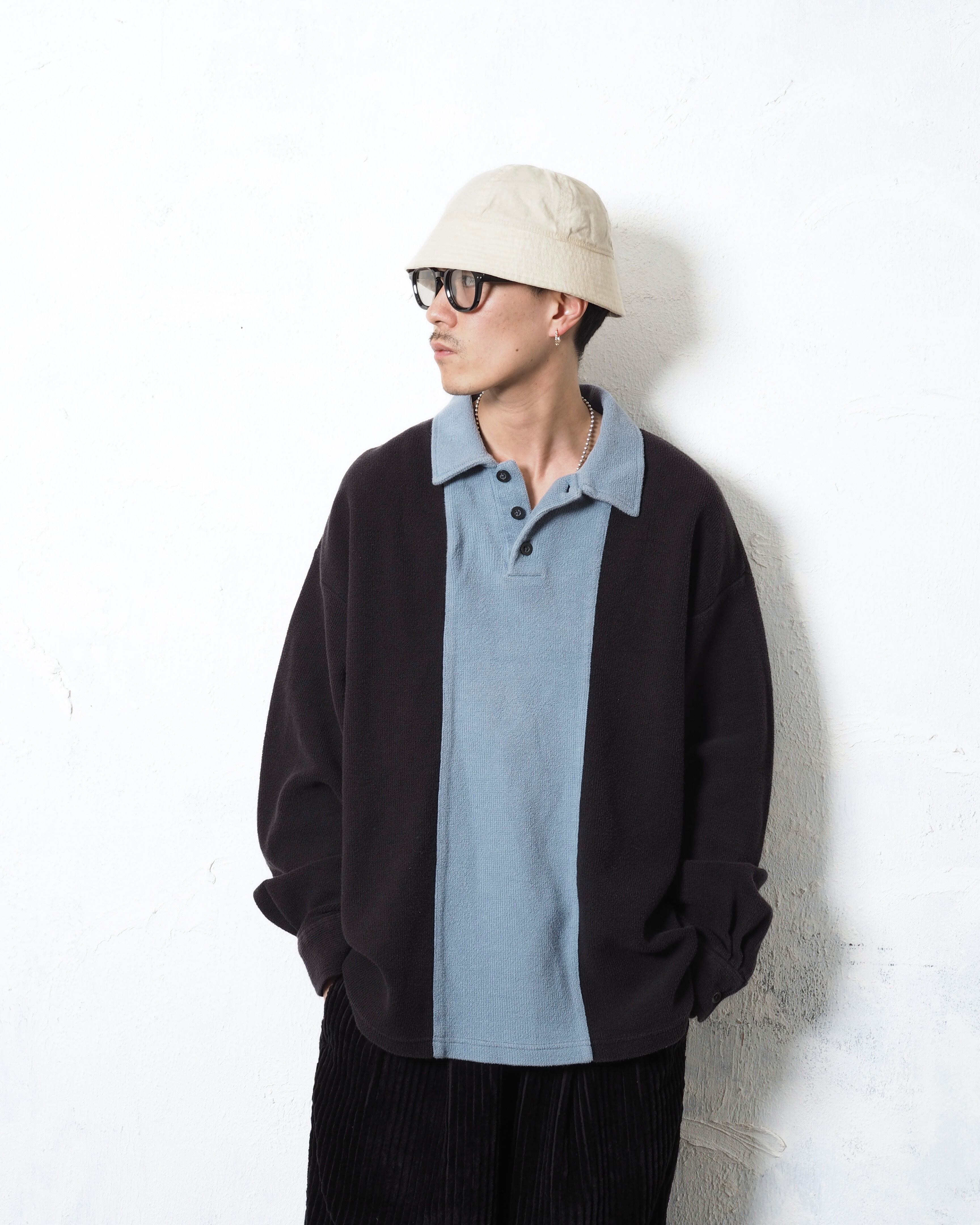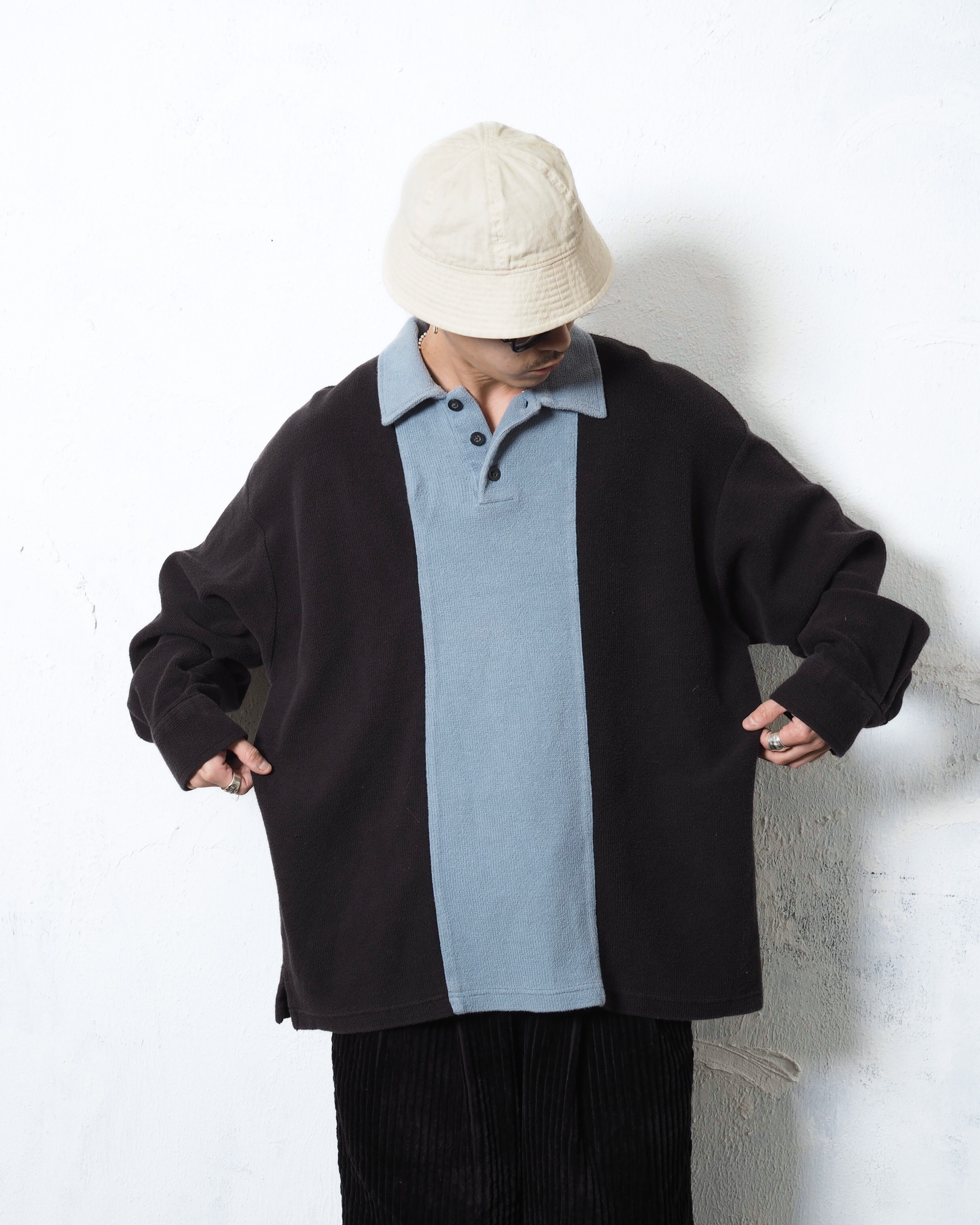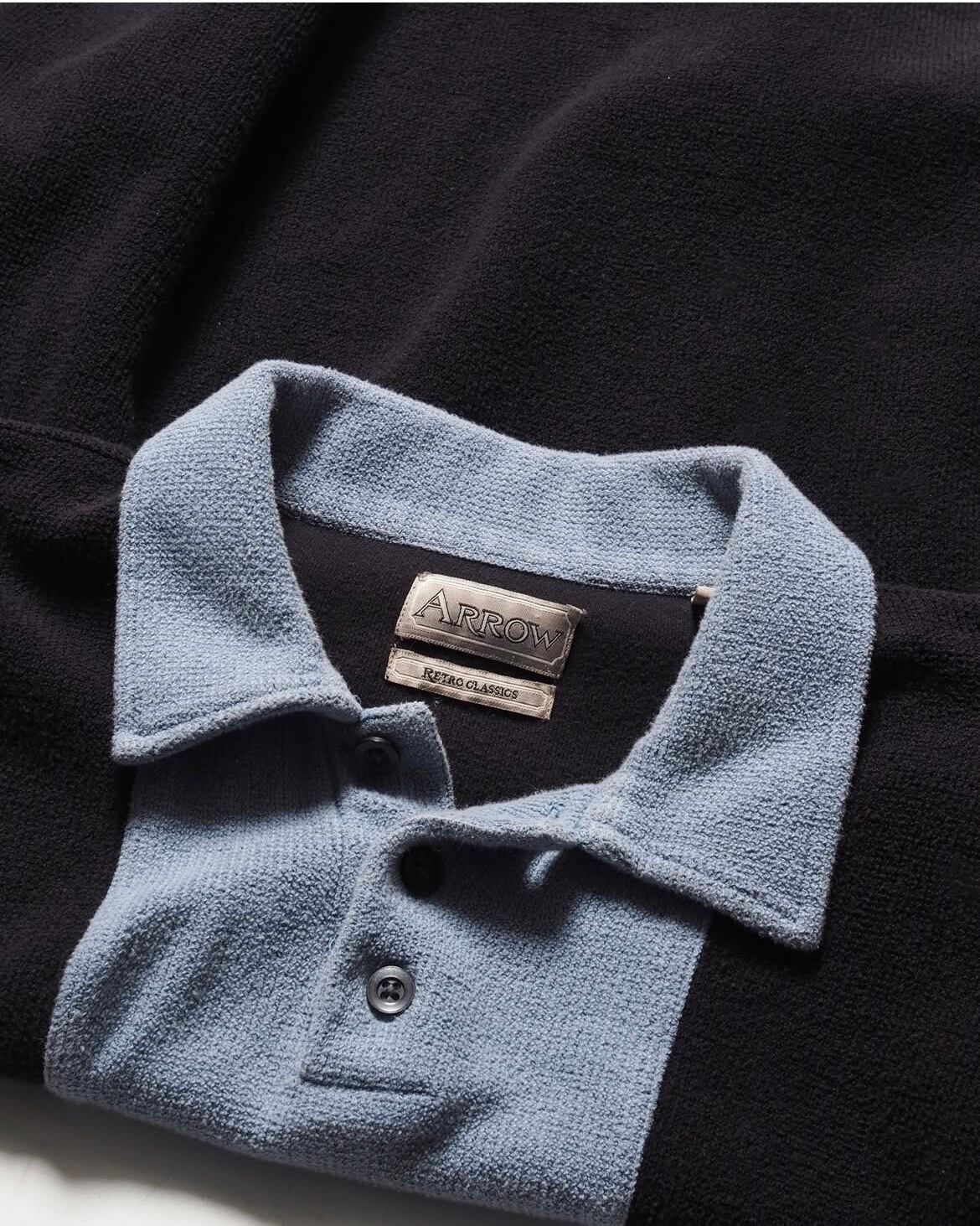 ブランドは老舗アローで、2トーンカラー且つニットポロタイプでリブなし、個人的に面白いと思ったポイントは生地にパイルを採用しているところ