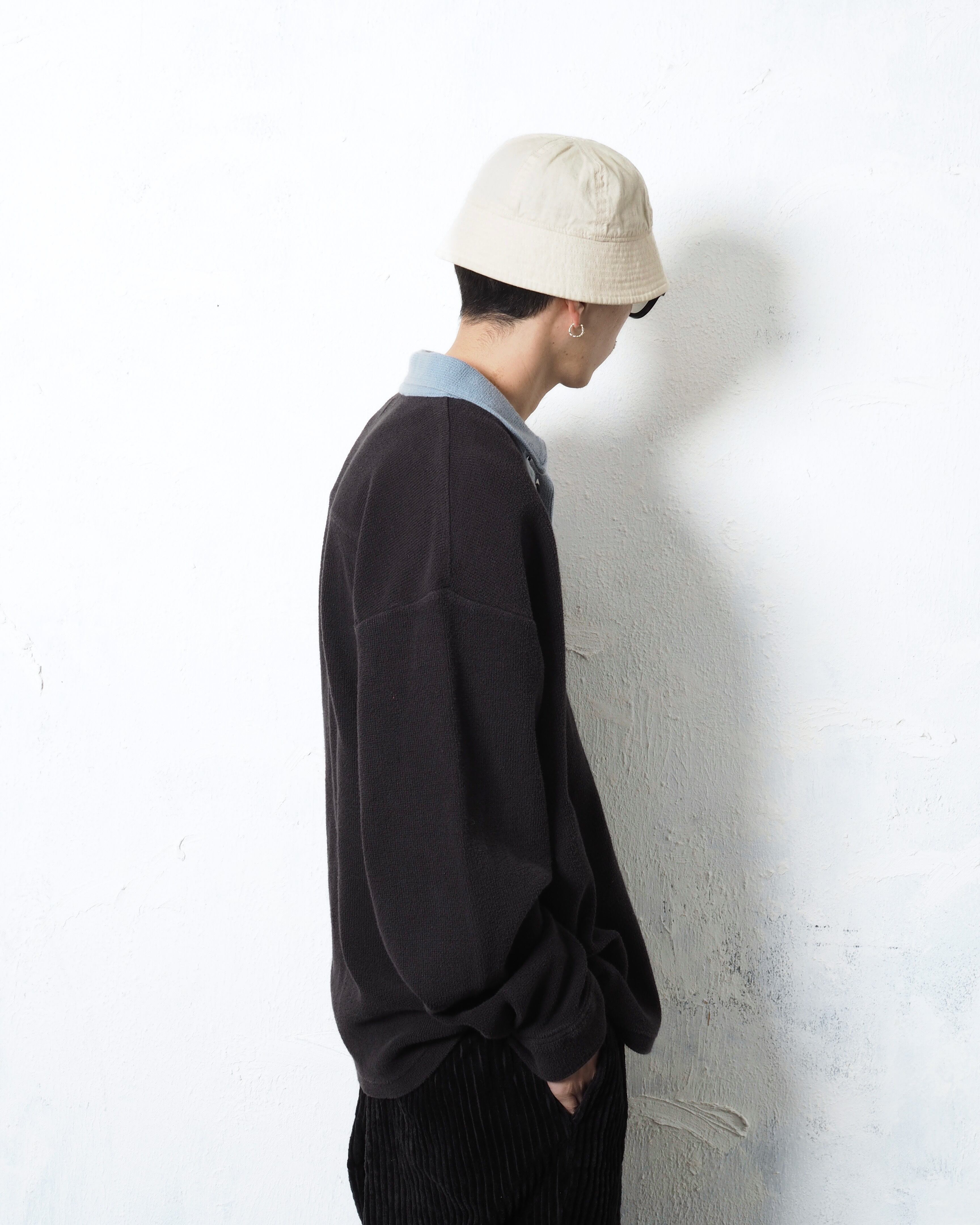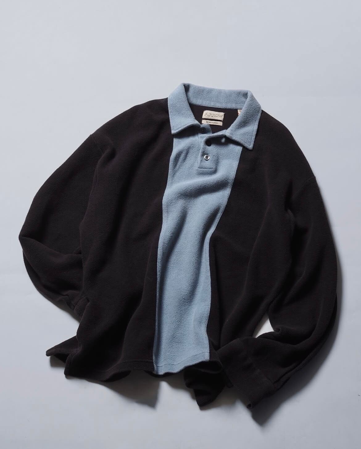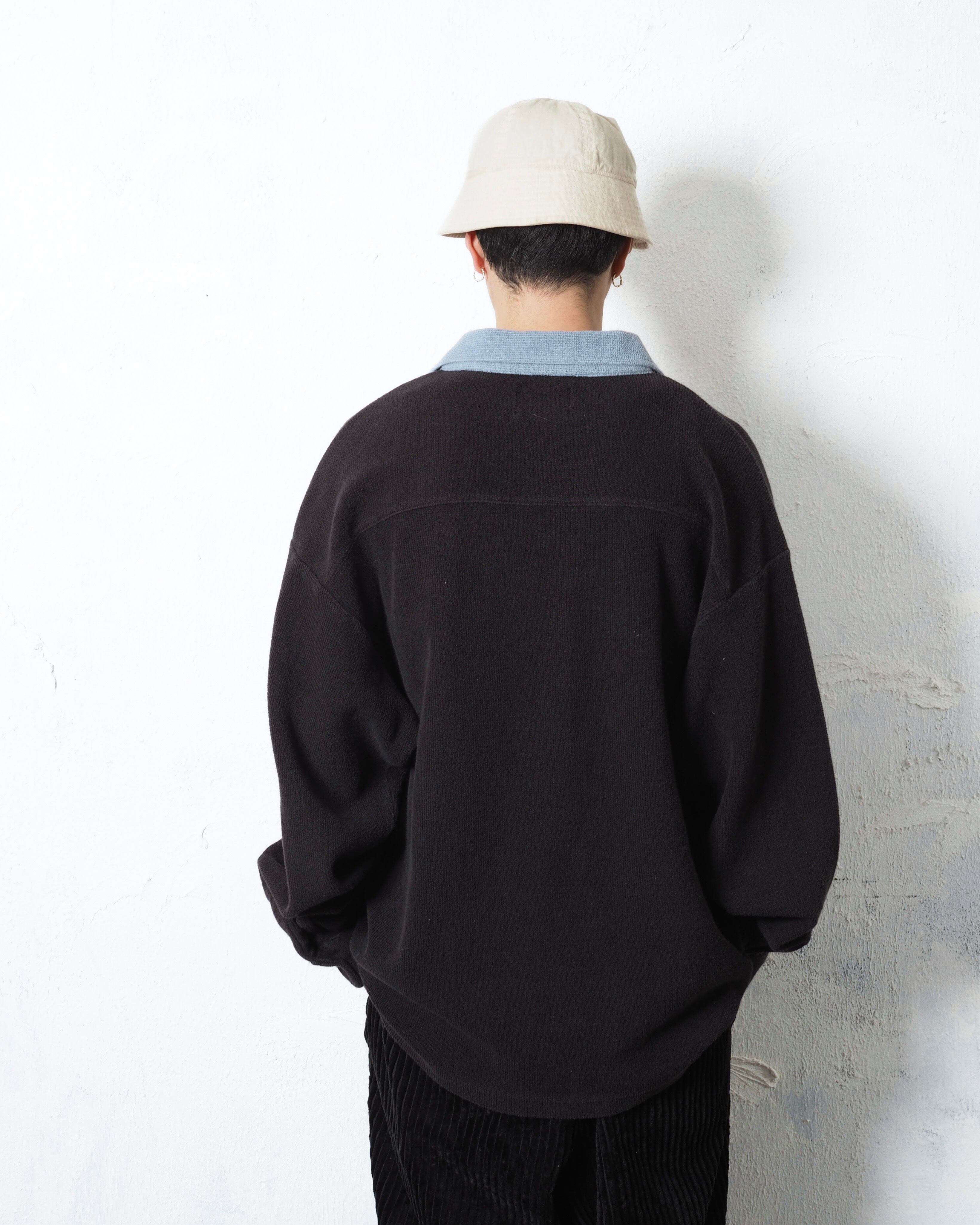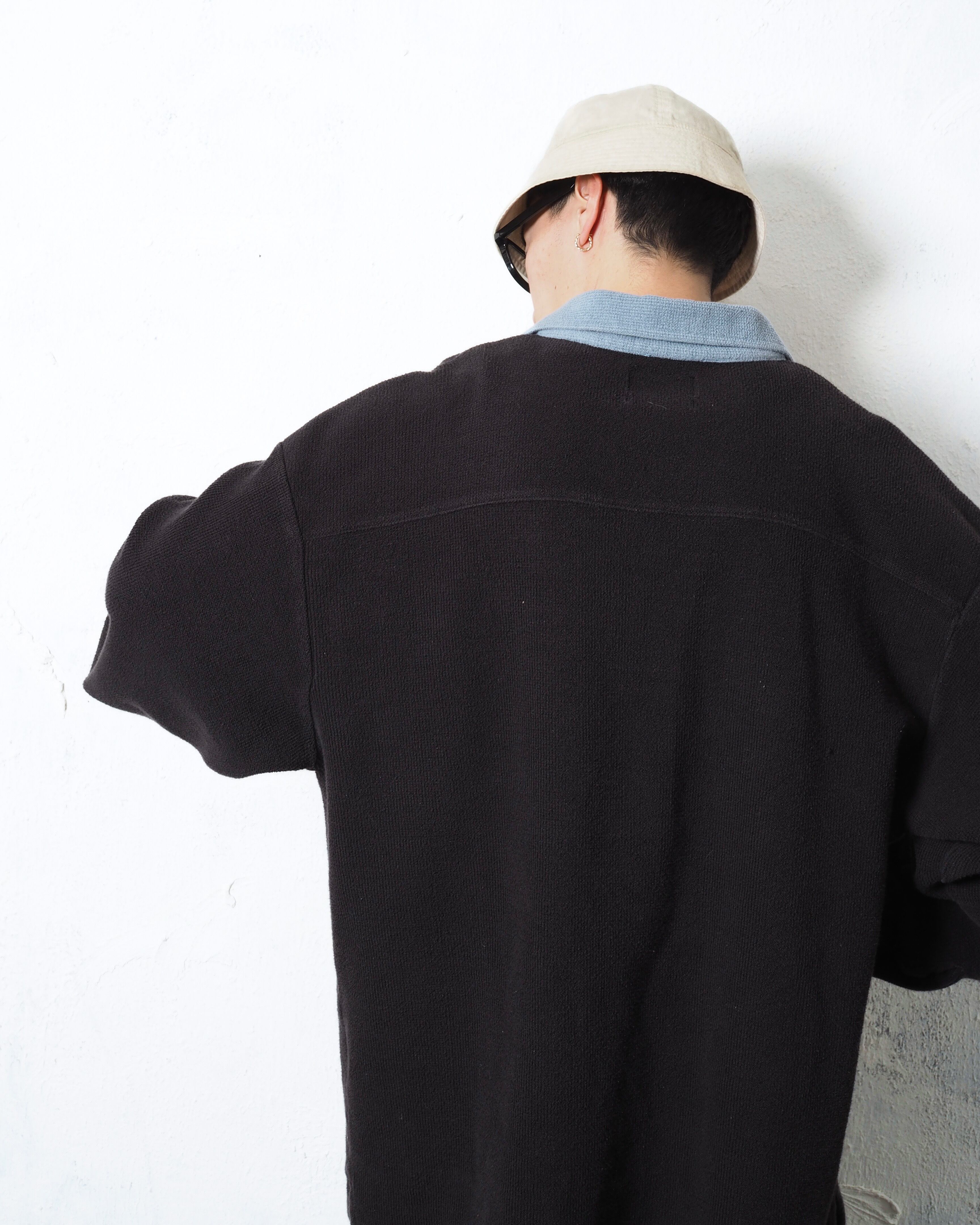ブランドは老舗アローで、2トーンカラー且つニットポロタイプでリブなし、個人的に面白いと思ったポイントは生地にパイルを採用しているところ
