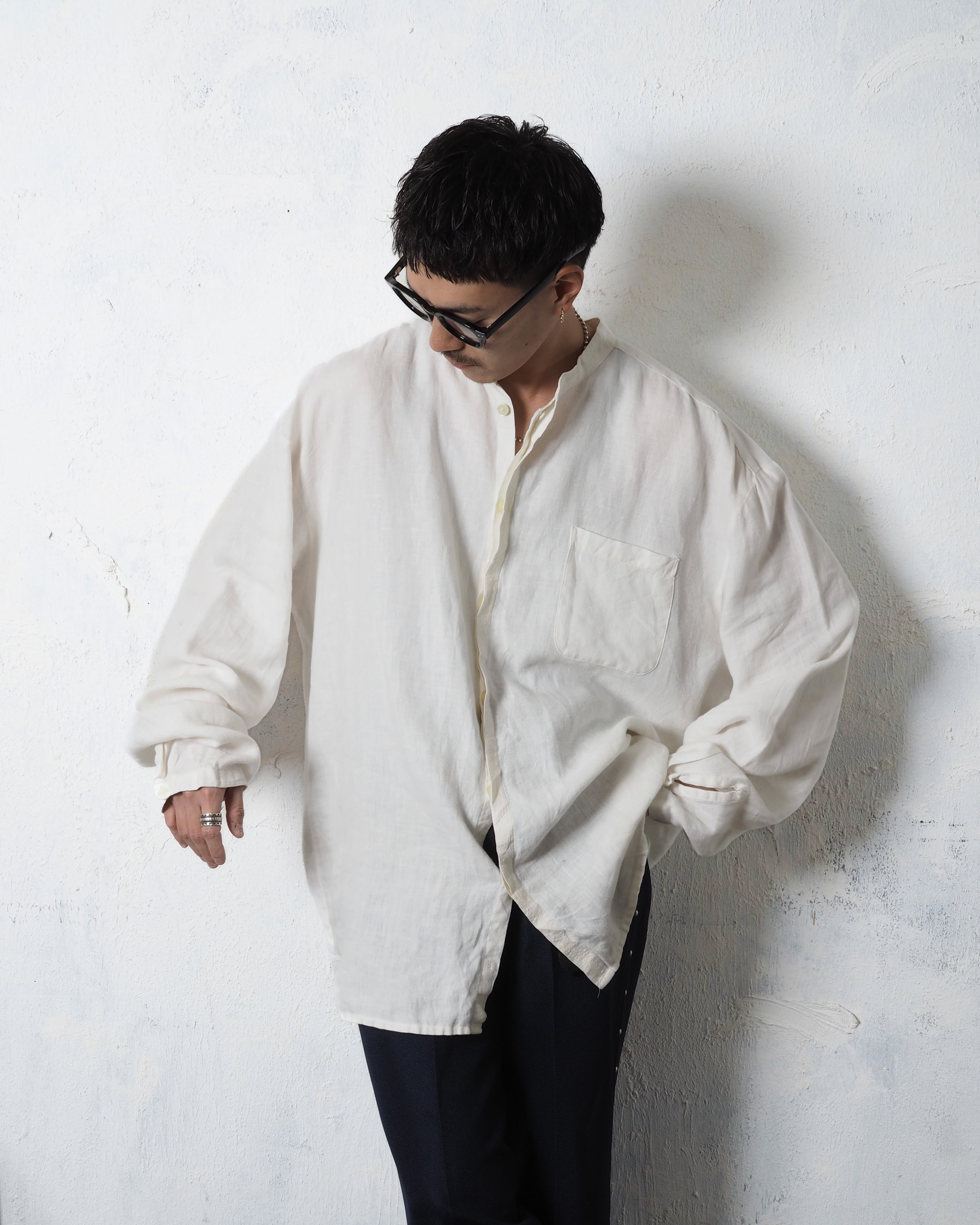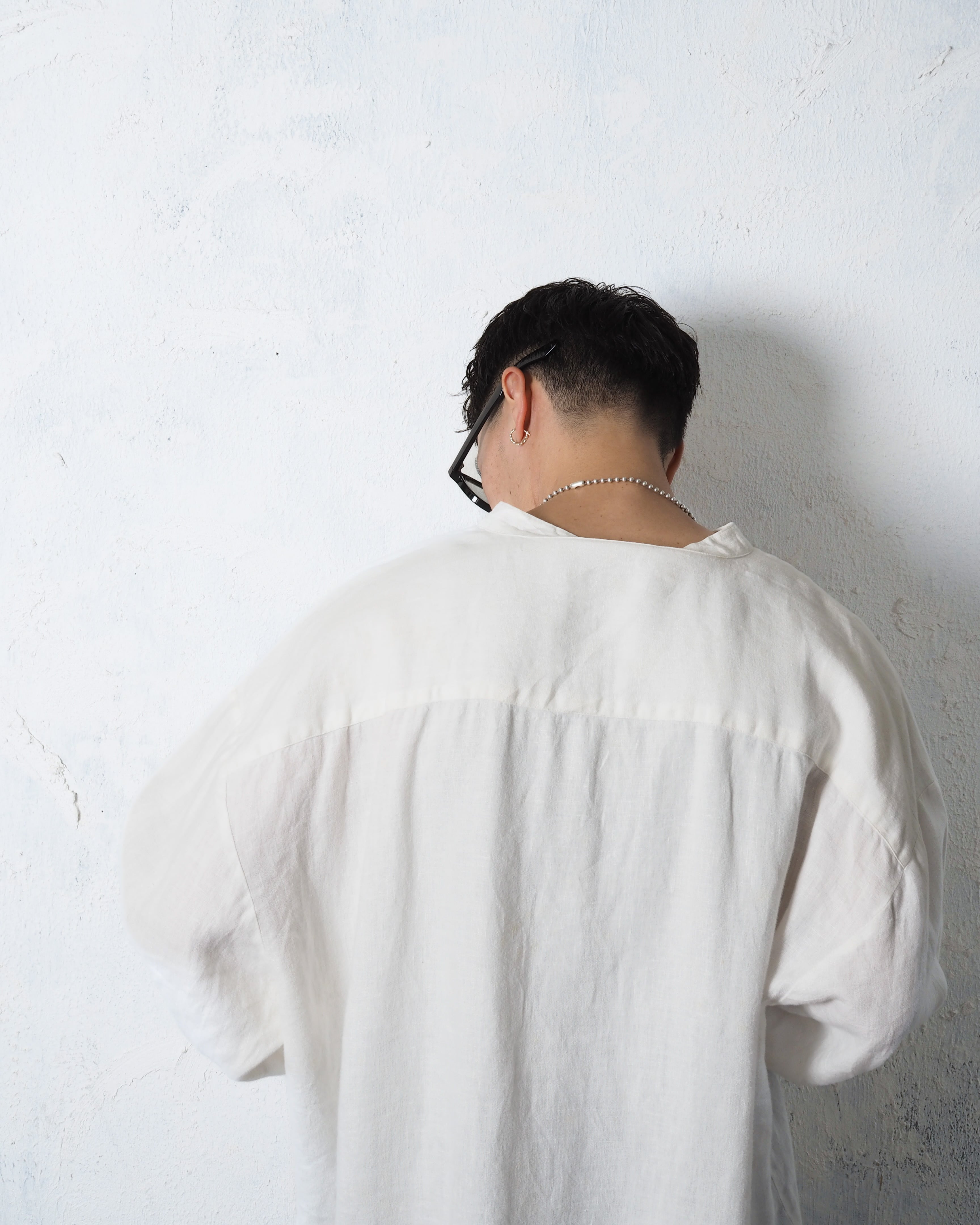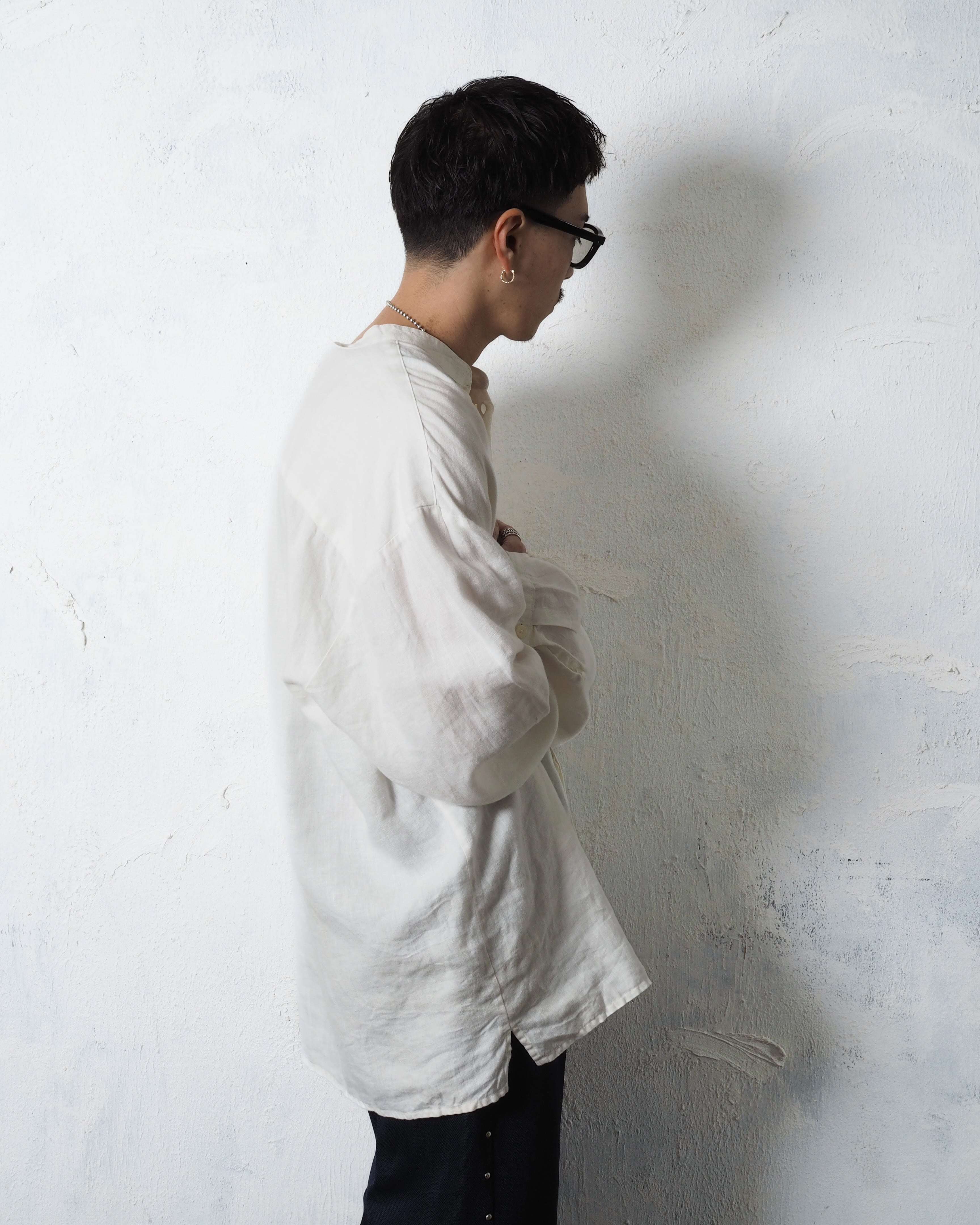 フロントは比翼で、やはり白シャツはこのくらいのサイズ感で着たいアイテム