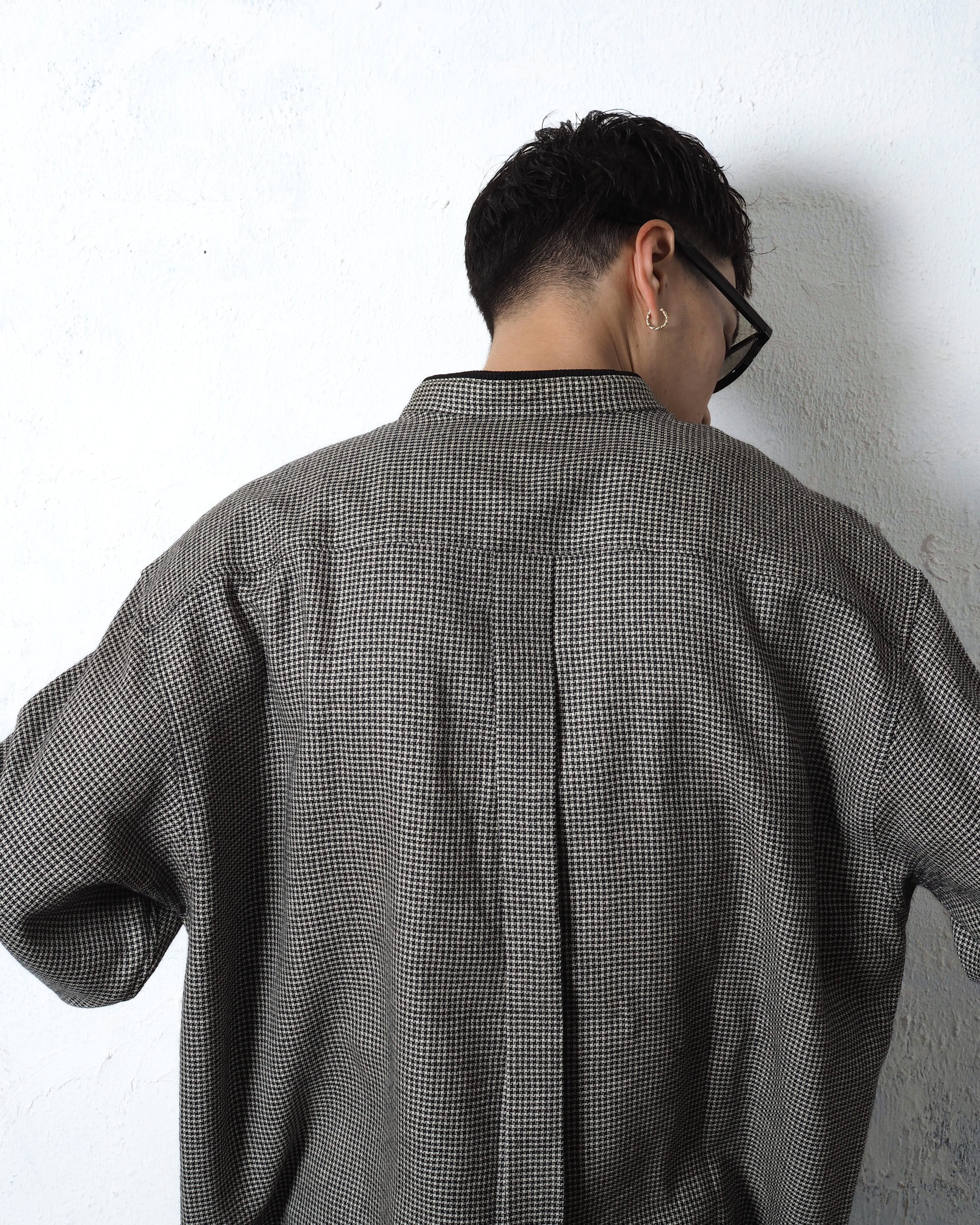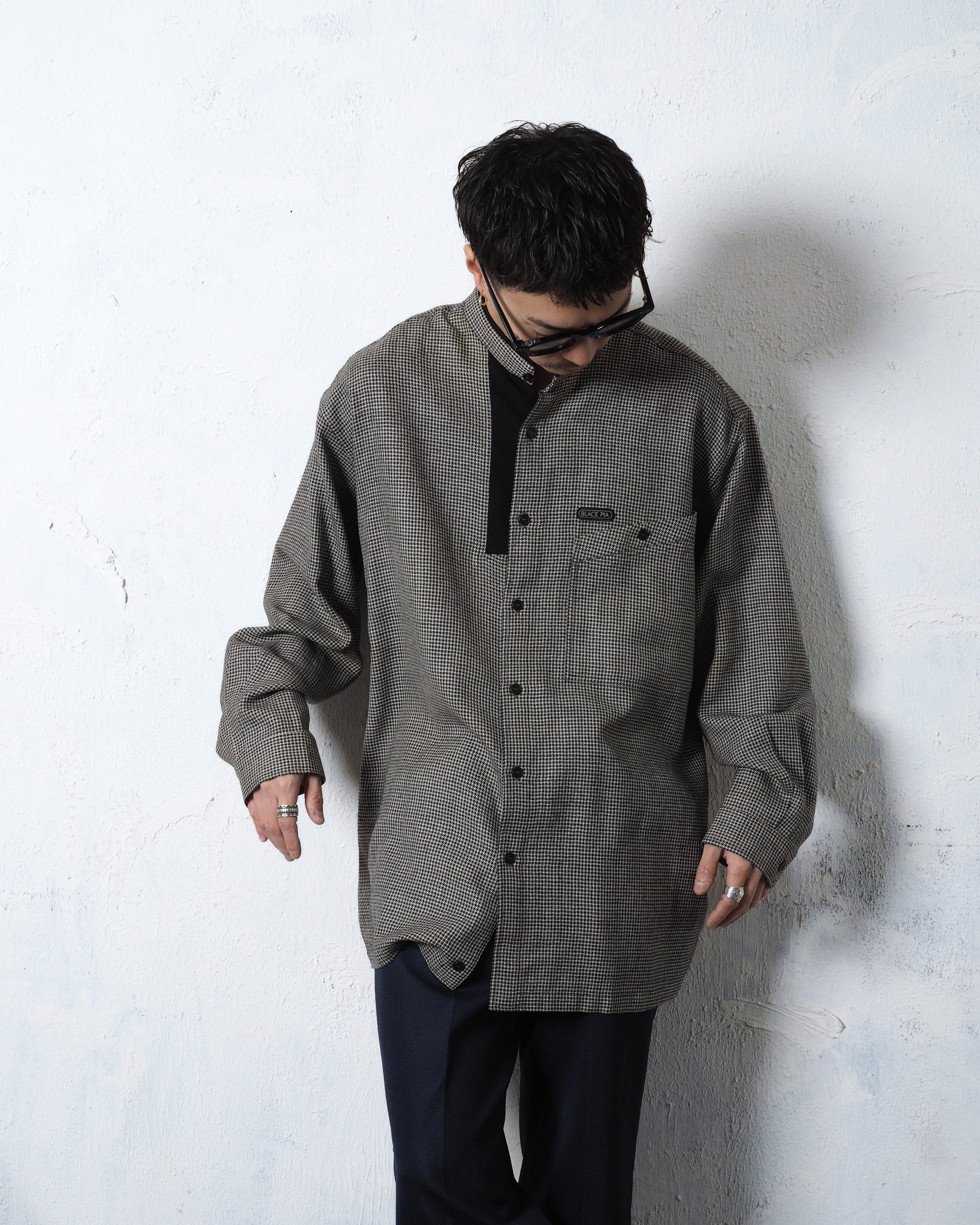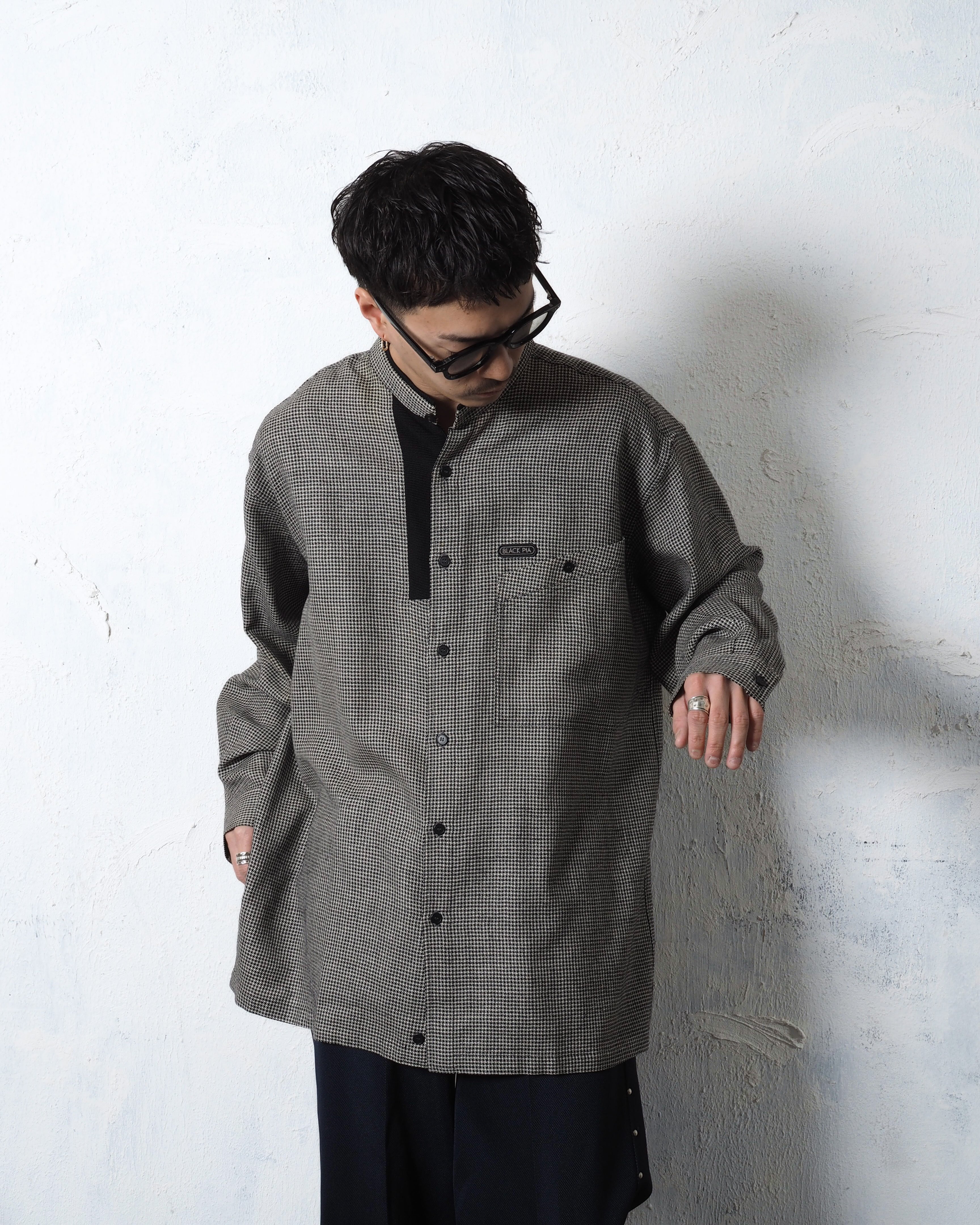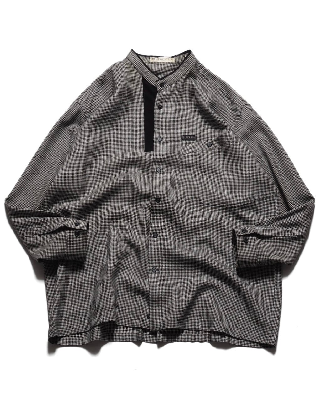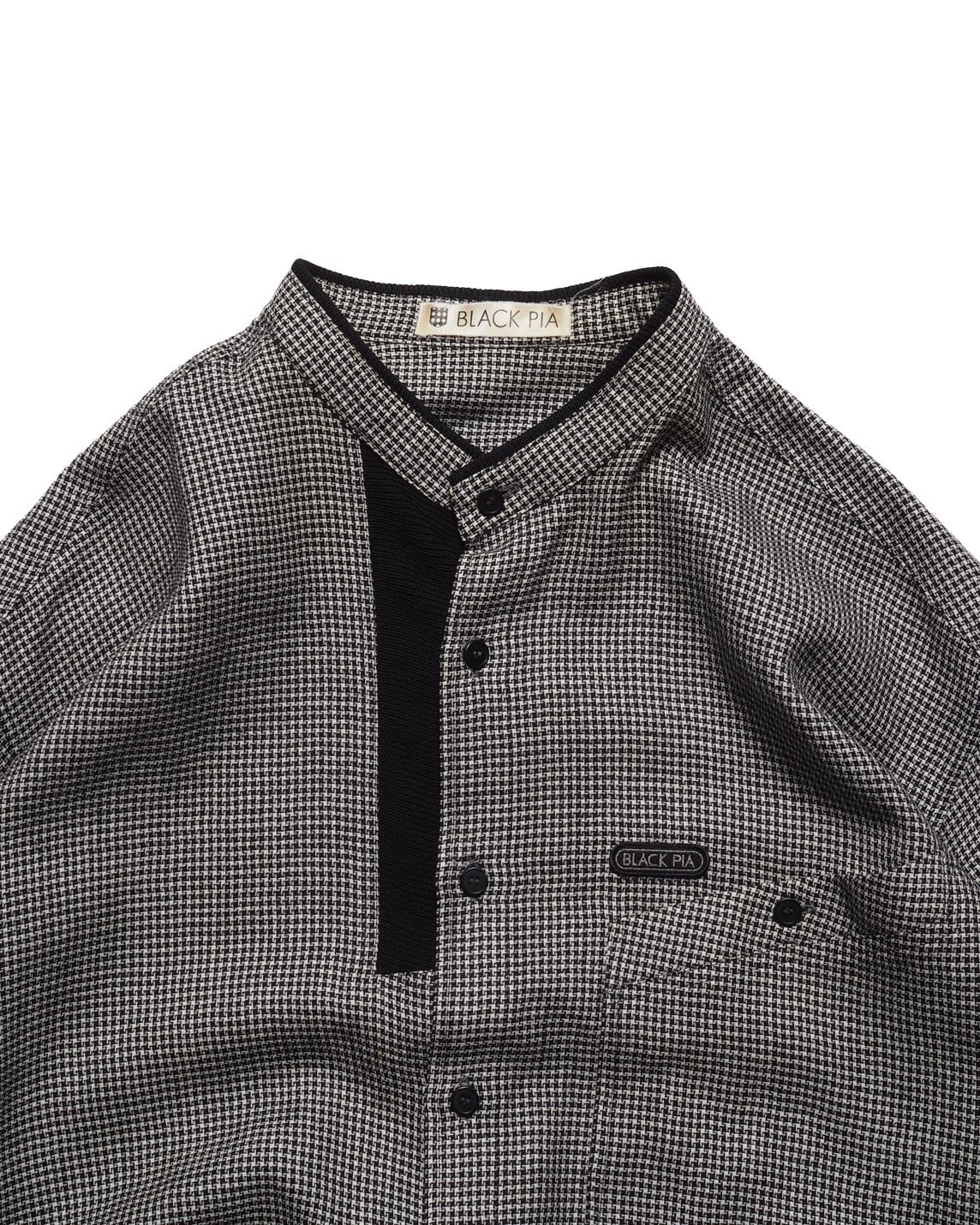 Black Pia Band Collar Gingham Check Shirts