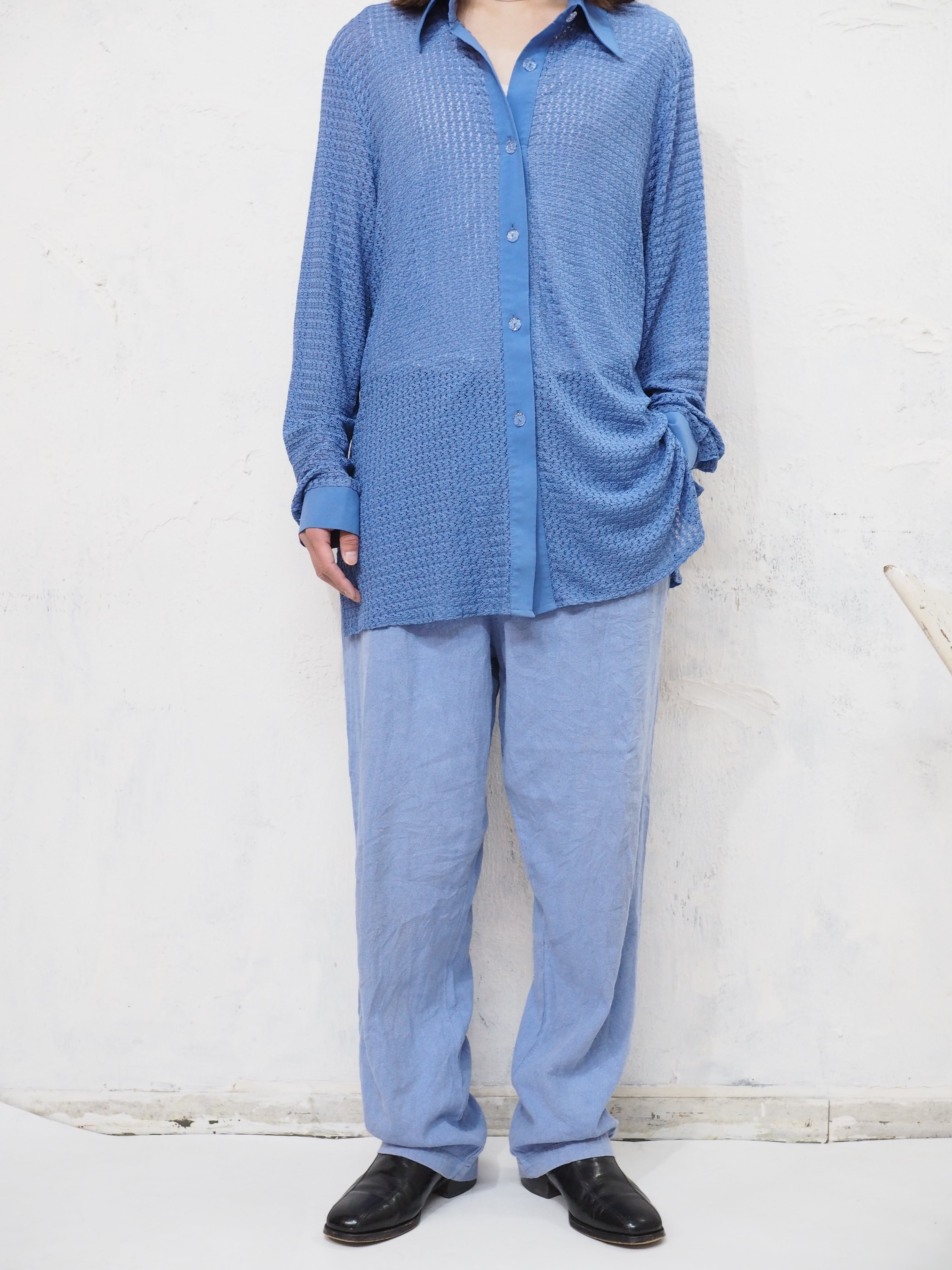 ここ数年でシアー系をコーディネートに組み込む方も多く感じますが鮮やかなカラーで主役級は古着で探すと中々難しいかと。