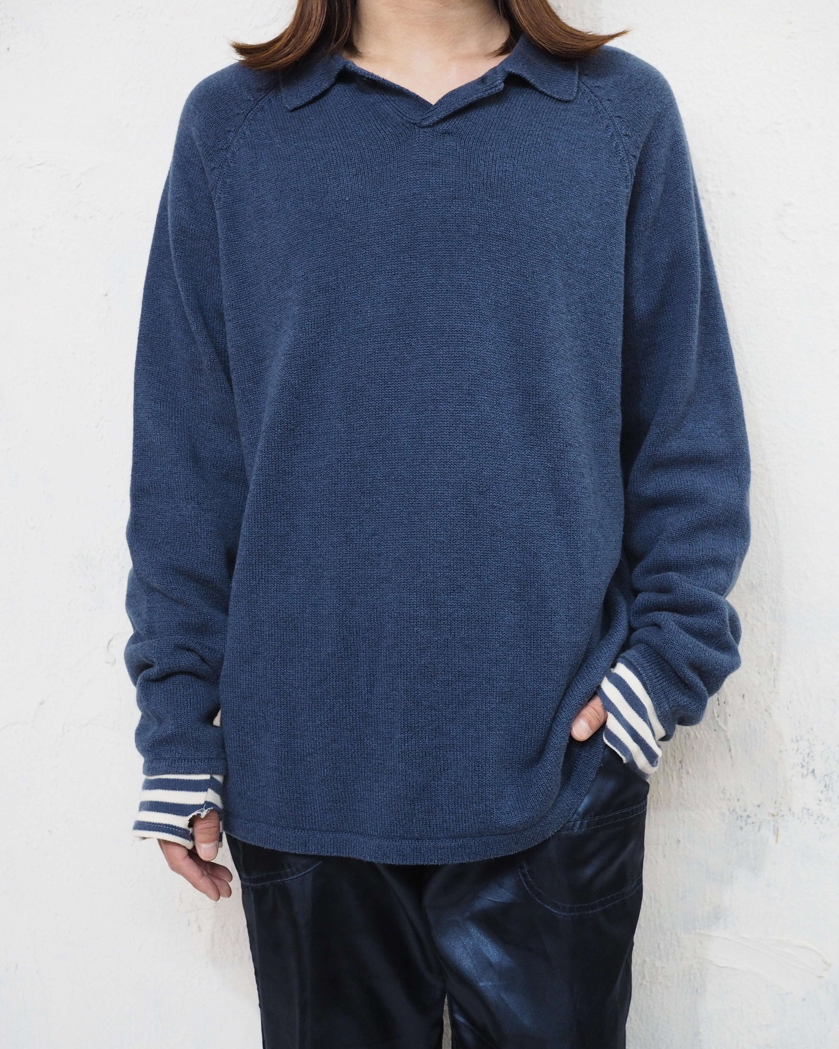 アクリル混で肩はラグラン、裾は切りっぱなし
