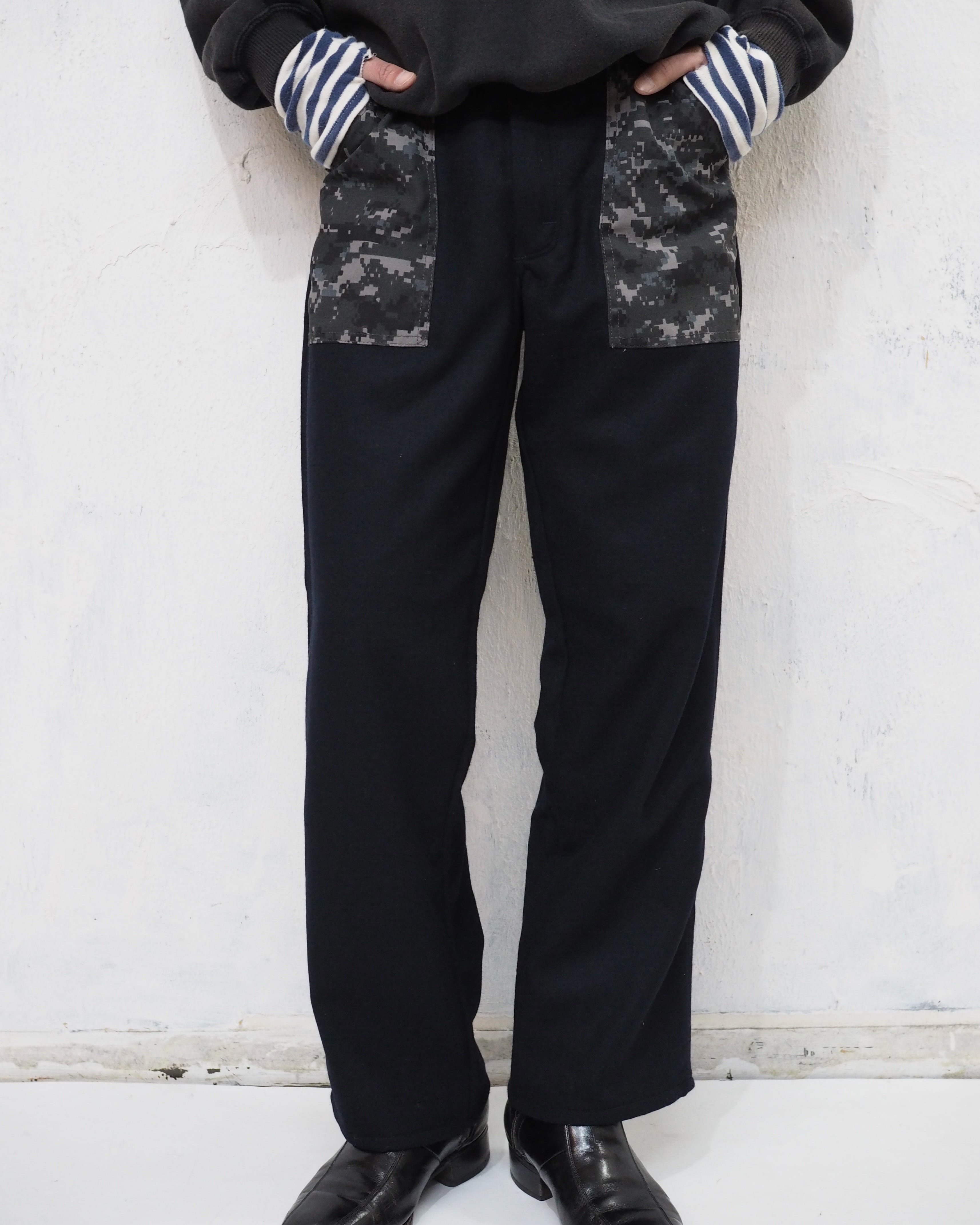 フロントバック共にポケットがデジカモ切り替えの薄手ウールスラックス