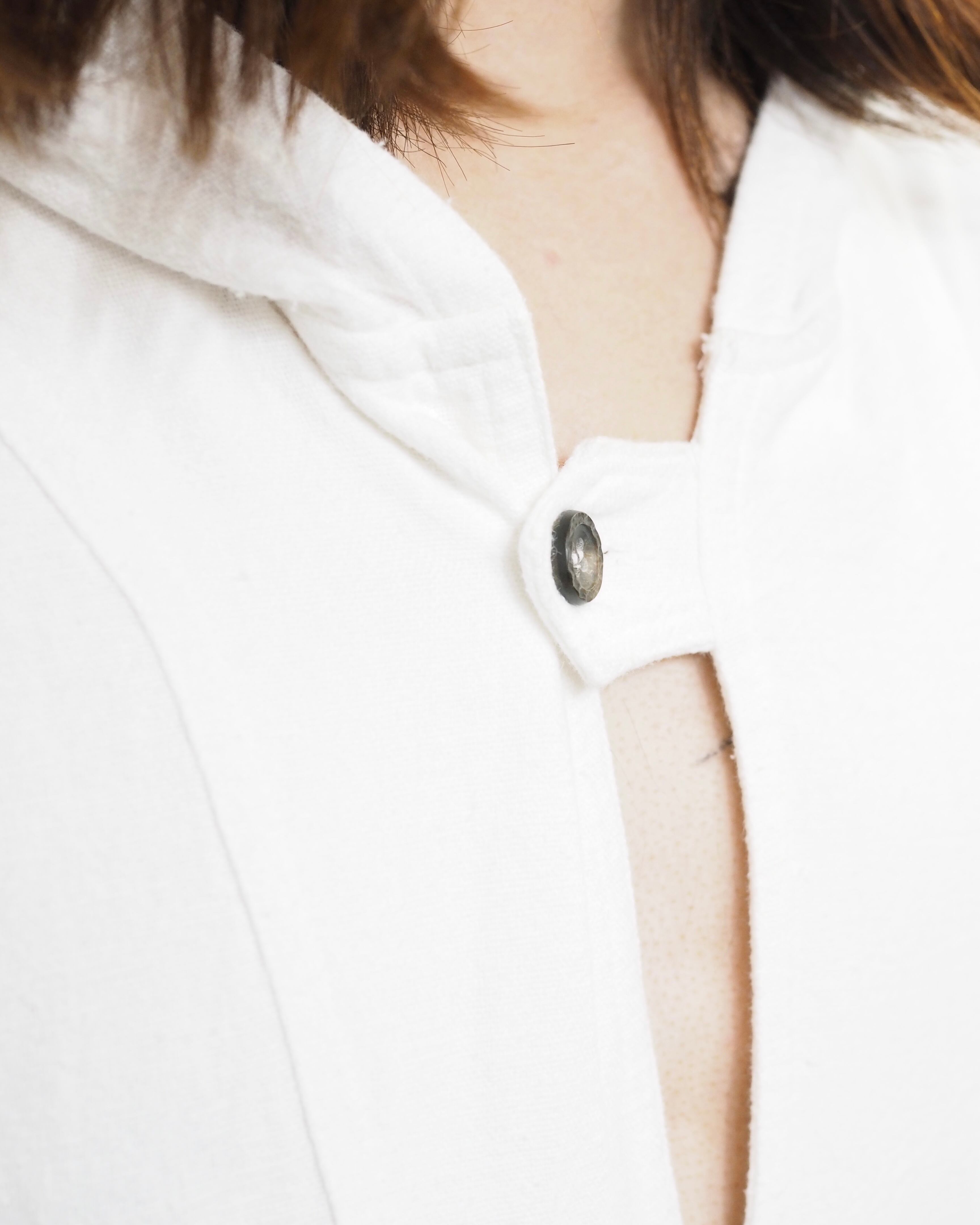 デザイン性のある胸元、開けてスキッパーっぽくも