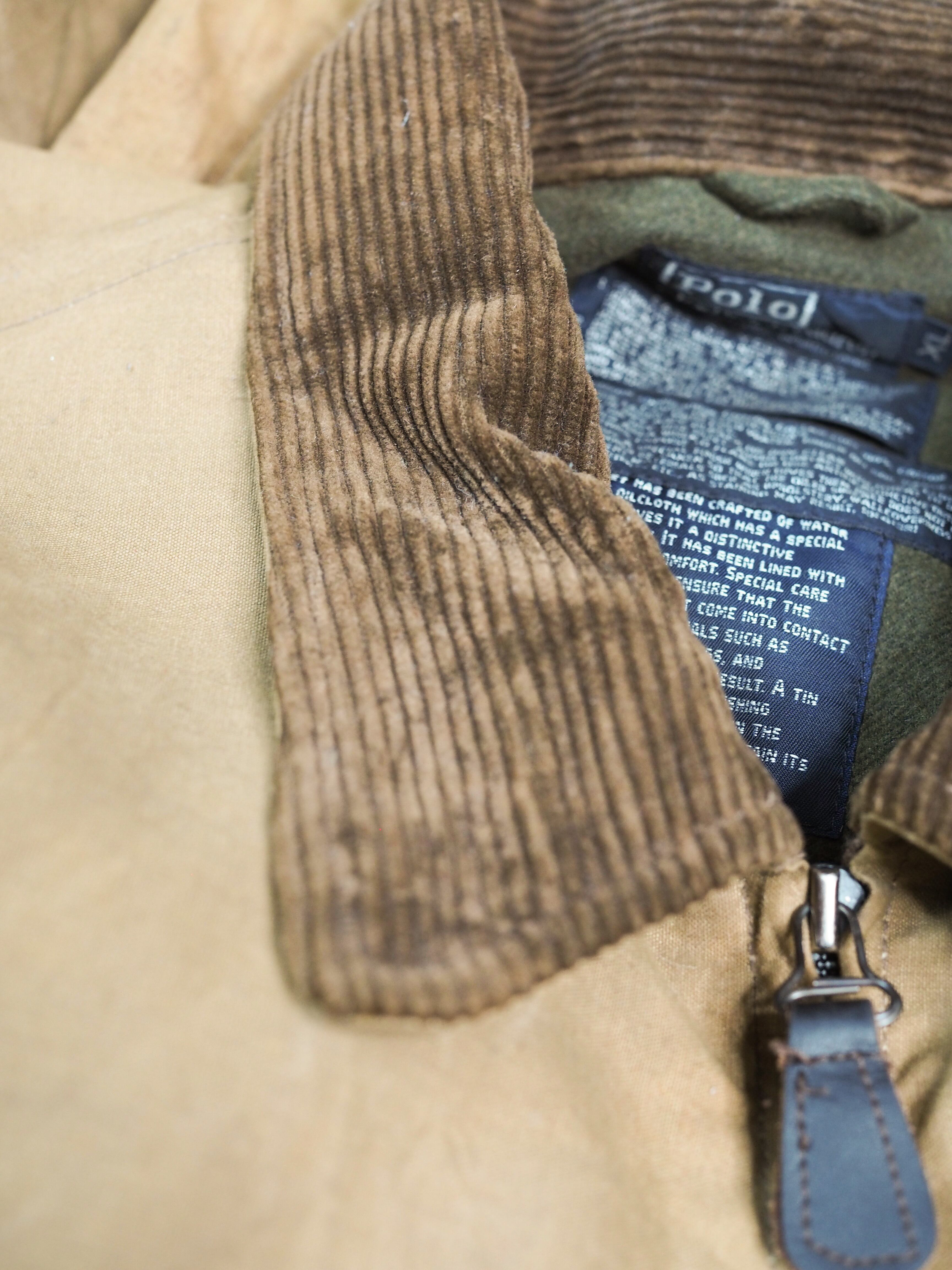 ミディアム丈ぐらいの、オイルドジャケット界では王道の地位を築いている某ブランドの定番型の様相をしつつも、随所にあくまでラルフローレンのアイデンティティが載せられた一着。