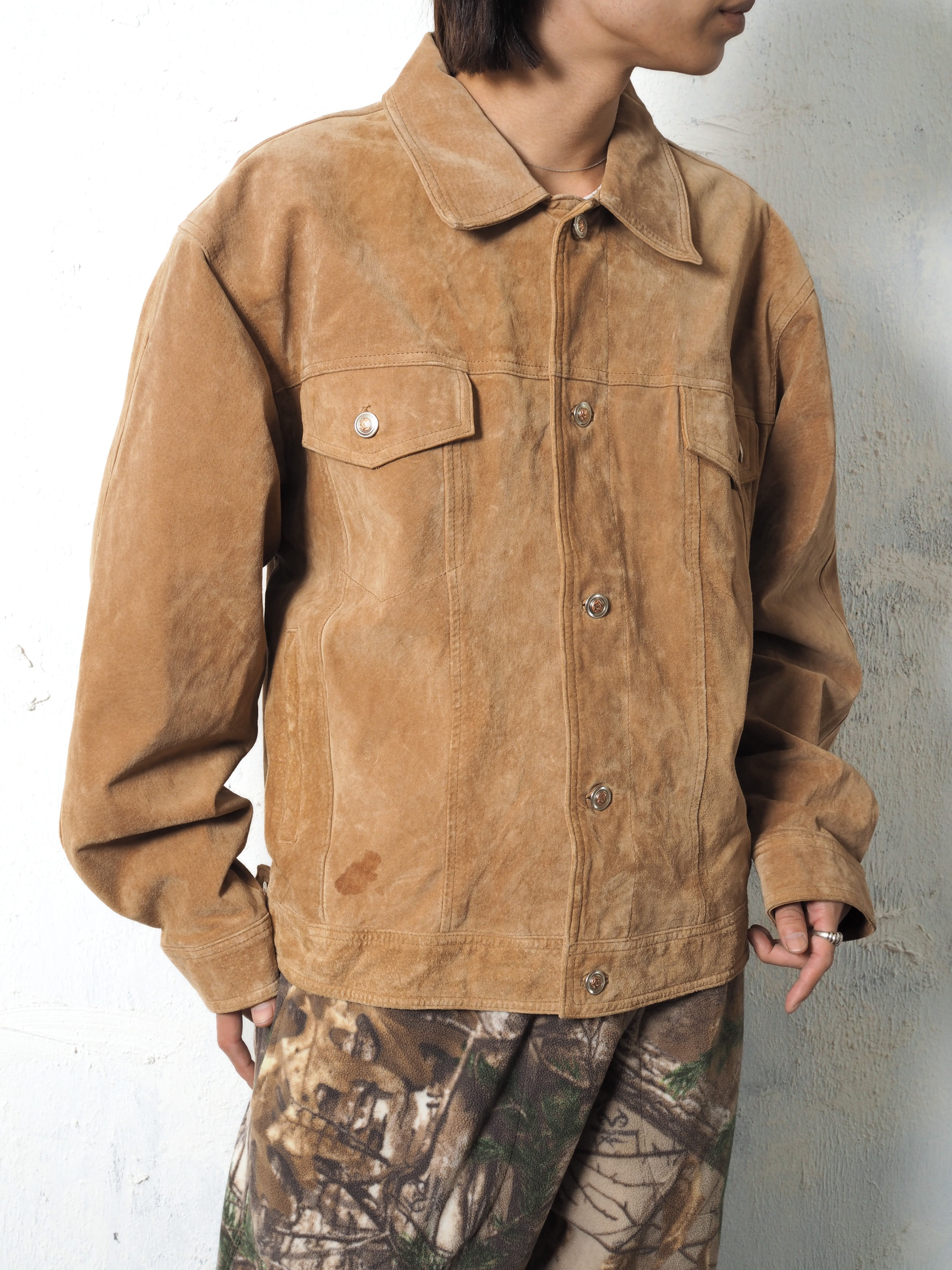 同日2着ご紹介のトラッカー型のレザージャケットより、ベージュカラーが最高に心地良い1着