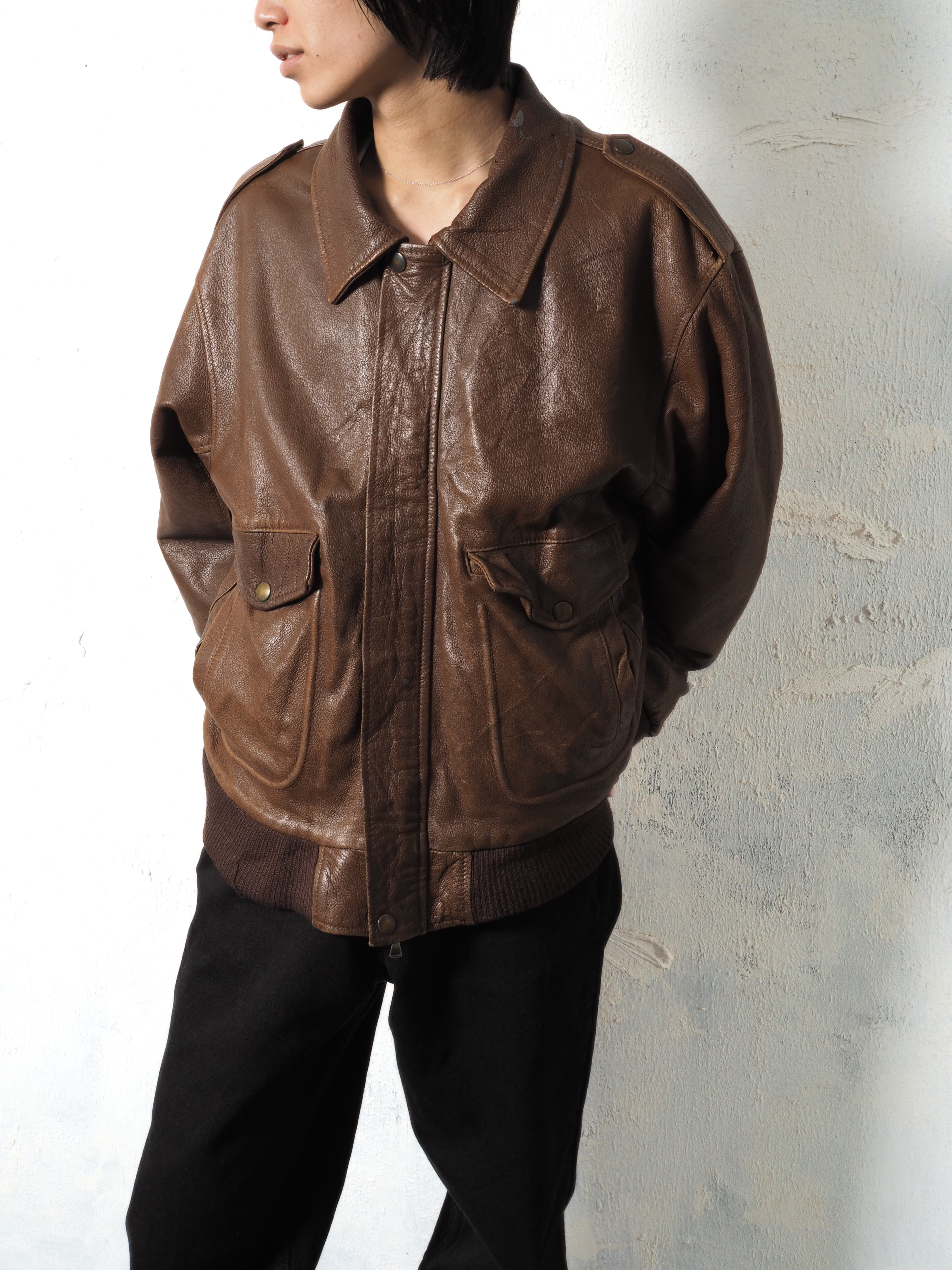 表情の奥行きを楽しめるシボ革というのも味わい深く、着用時の必要な部分だけがオーバーでレザーにおいて特に重要な肩は身体に沿ってしっかりと落ちる1着