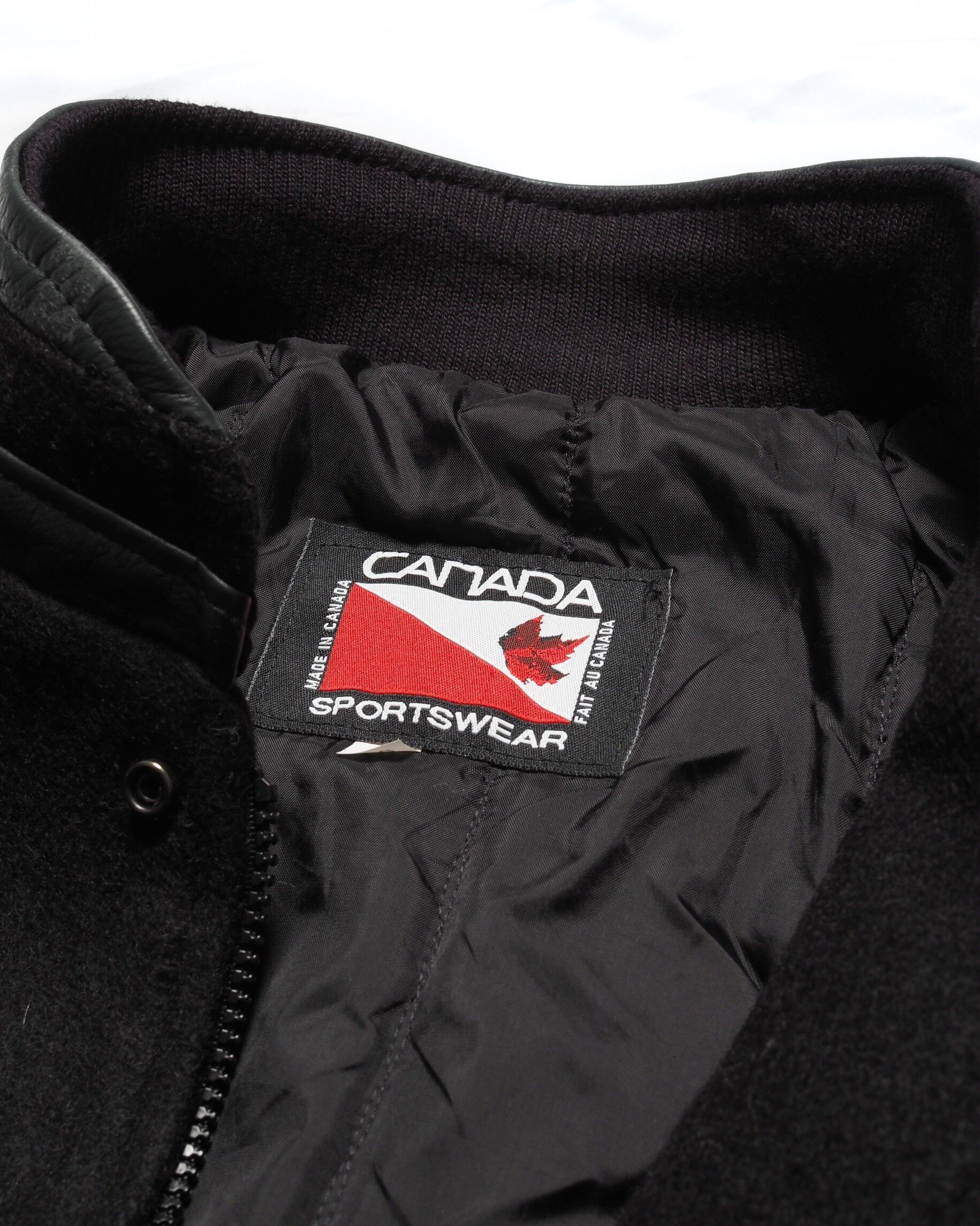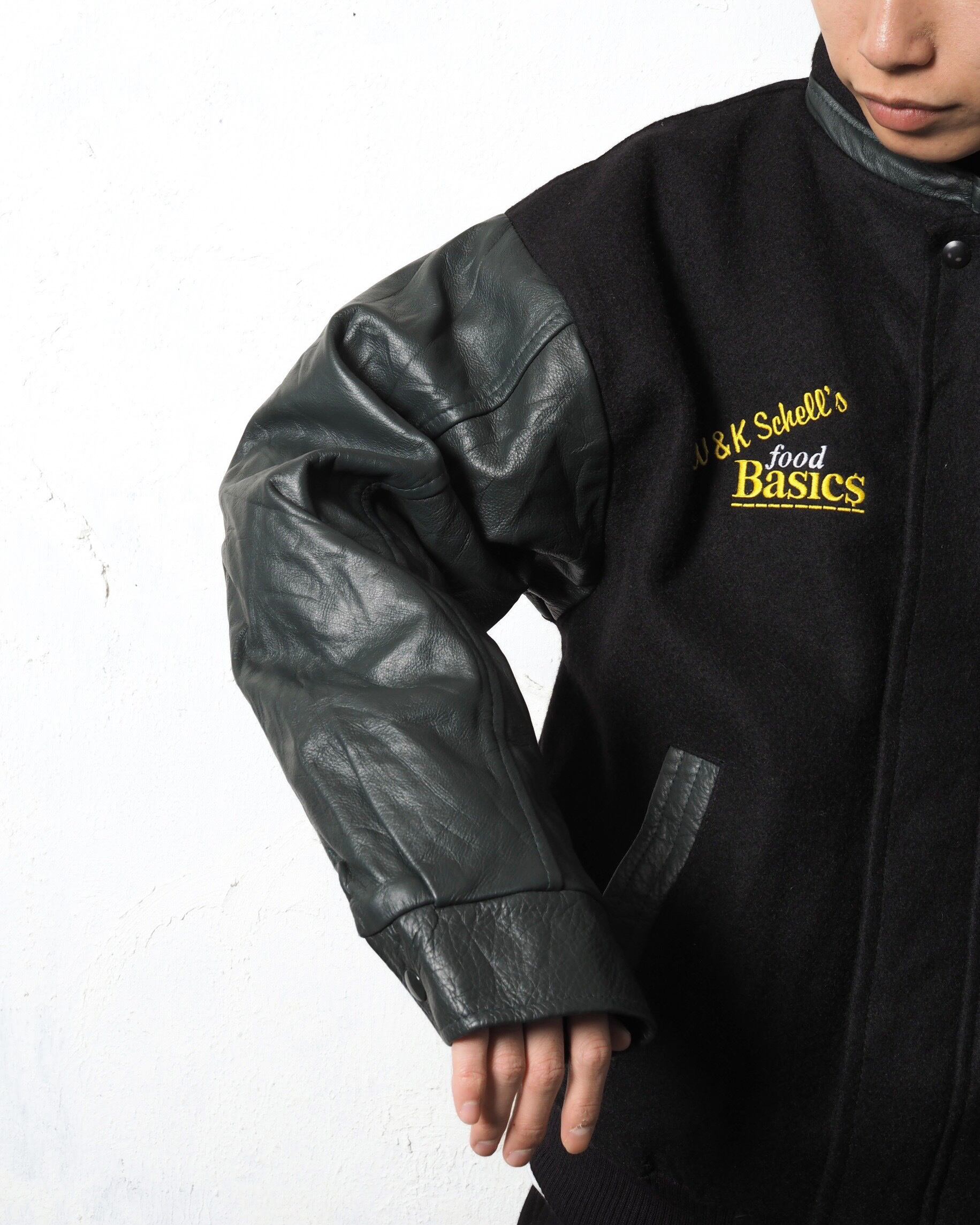 Leather Switching Wool Stadium Jacket "Made in Canada"
