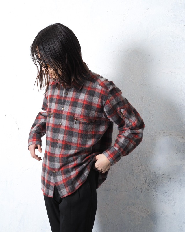 Text 》 イタリアメイド、ウールにプラスでビスコースがミックスされたネルシャツ ジップにボールチェーン、フロントはフルスナップで、少し古めの個体 ディティールが少しズレたアイテムチョイスは型にハマらずスタイリングが組めるので、視野が広がると思います Size 》 44 (着用モデル:172cm) 着丈:71cm 身幅:58cm 肩幅:52cm 袖丈:61cm ※多少の誤差はご了承下さい Material 》 Wool 60% Viscose 40% Condition 》 B S:新品または未使用(デッドストック) A:使用感がなく、ダメージのない美品 B:使用感ありだが、比較的綺麗な個体 C:着用に支障がない程度の個体(微細なヨゴレ等) D:使用感が強く、大きなダメージや汚れあり ※当店で扱っている商品はユ‐ズドアイテムになり、古着の特性上、わずかな汚れやシミ等による返品、返金、交換は受け付けておりません。 必ず写真と詳細欄をご確認の上ご購入お願いいたします。
